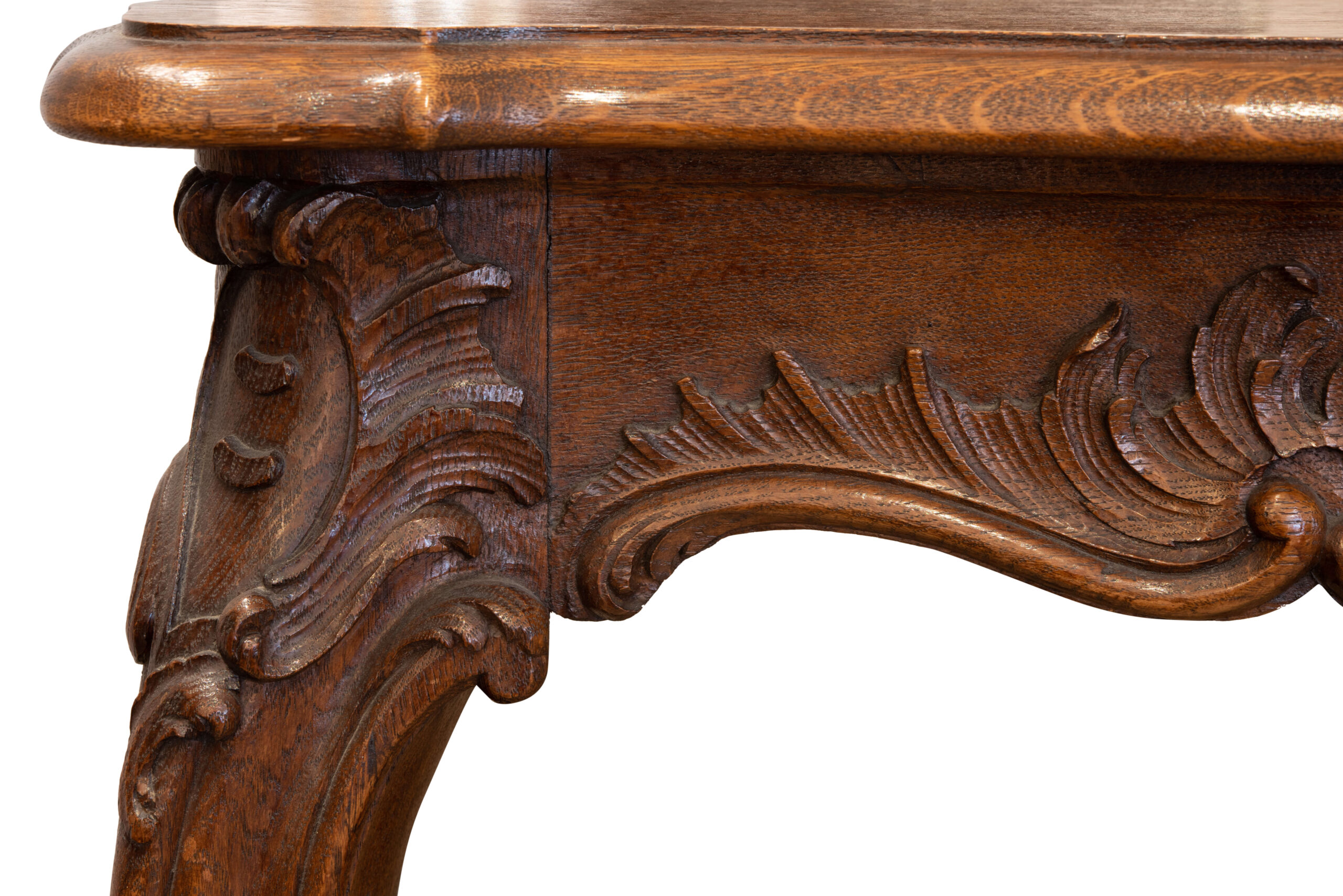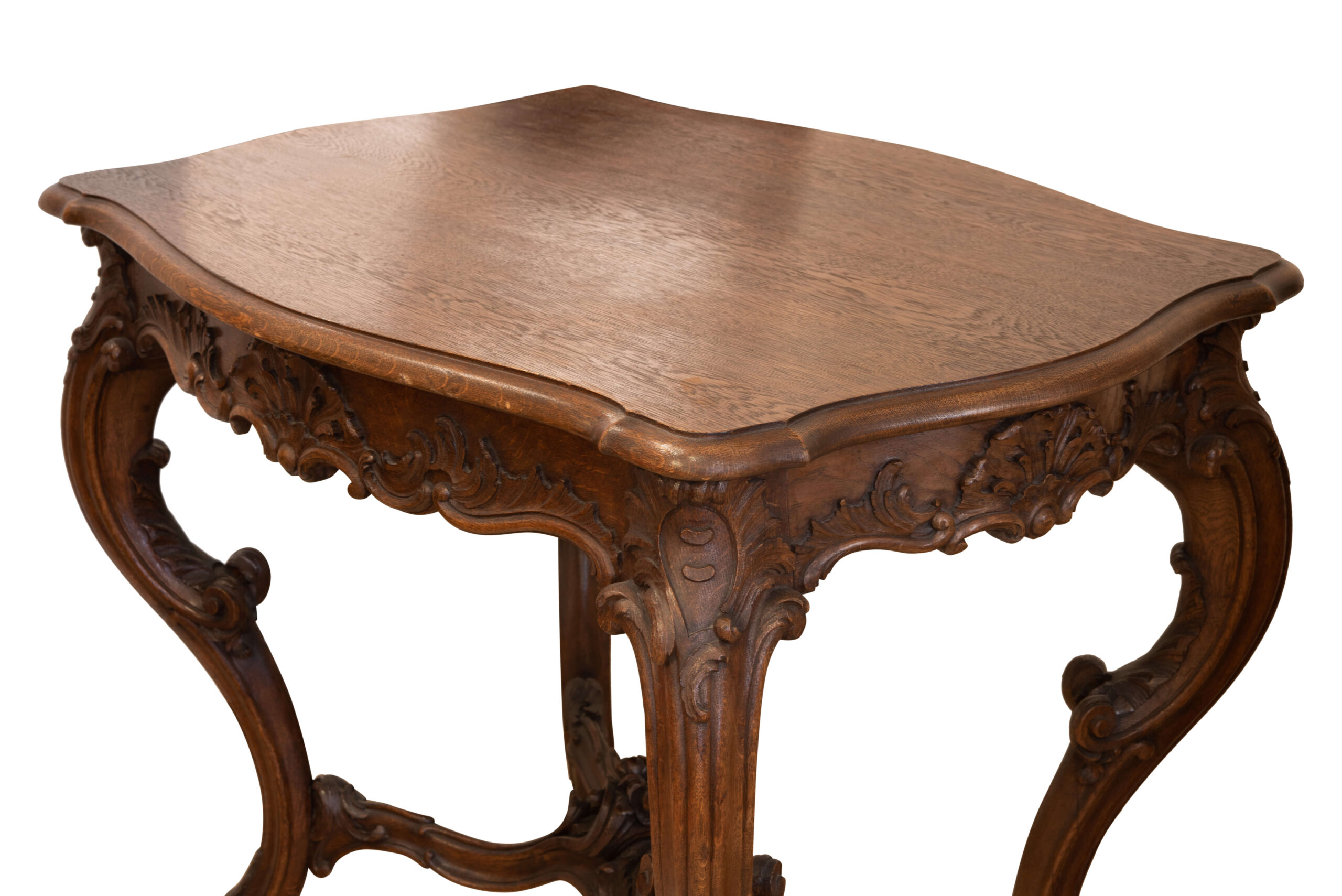A wooden table that impresses with its intricately carved decorations. Dimensions: 94 x 68 x 79 cm. | Ein Holztisch, der mit kunstvoll geschnitzten Verzierungen beeindruckt. Maße: 94 x 68 x 79 cm