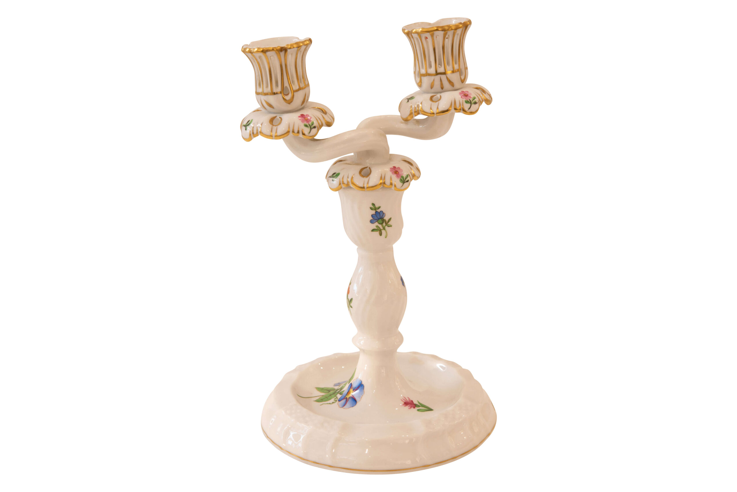 Herend, zweiflammiger Kerzenhalter (blaue Blumen) | Herend, two-flame candlestick (blue flowers)