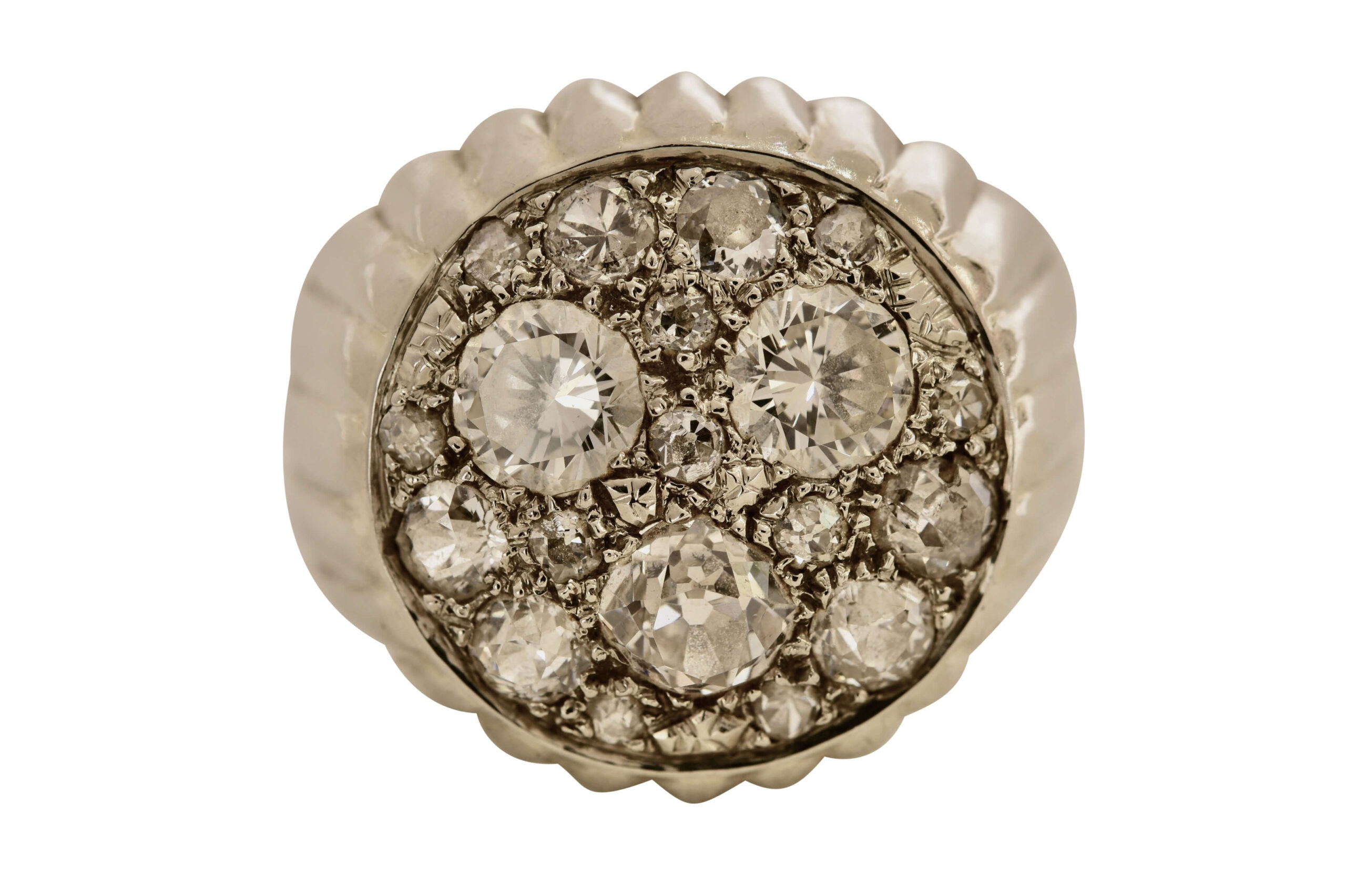 Ring Weißgold 585/fein mit Altschliff, Übergangsschliff, Achtkant-Diamant, zusammen ca. 1,99 ct, Gesamtgewicht 9 g, RW 54+ | Ring white gold 585/fine with old cut, transitional cut, octagonal diamonds, together approx. 1.99 ct, total weight 9 g, size 54+