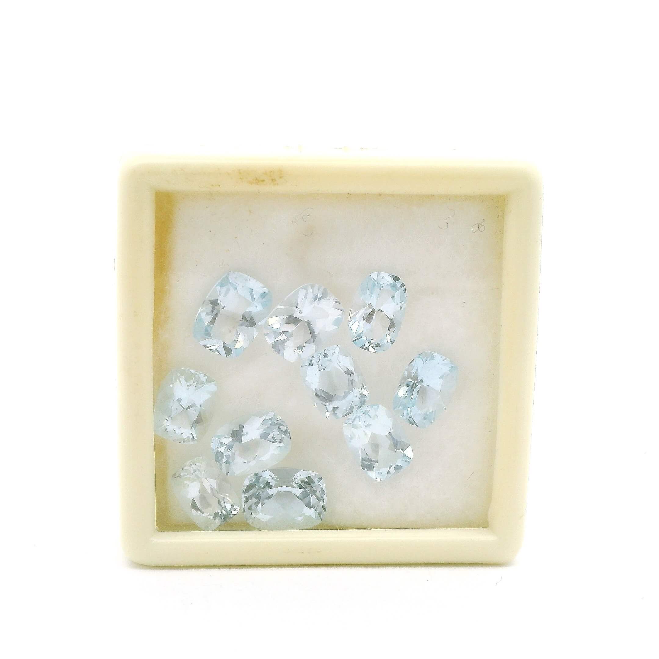 Aquamarine 10 Stück, Maße 5 × 7 mm, Gesamtgewicht 10,53 ct – Dieses Los ist voll umsatzsteuerpflichtig (kein Differenzbesteuerung)* | Aquamarines 10 Pieces, Dimensions 5 × 7 mm, Total Weight 10.53 ct – This lot is fully liable to VAT (no margin scheme applies)*