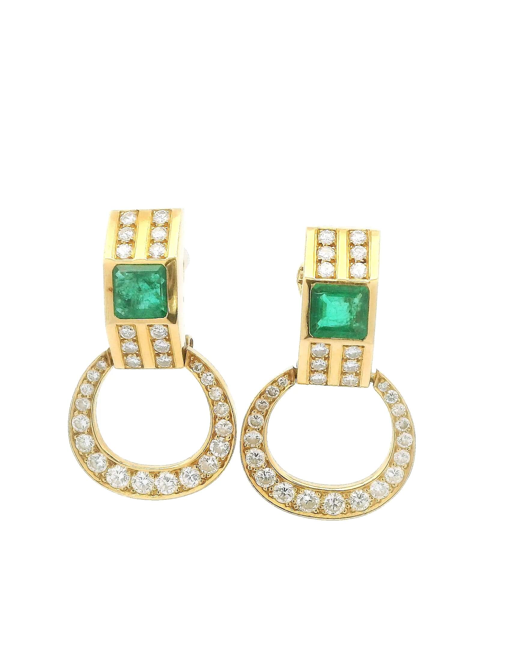 #134 Ohrclipse aus Gelbgold mit Brillanten und Smaragden | Ear Clips In Yellow Gold With Diamonds And Emeralds