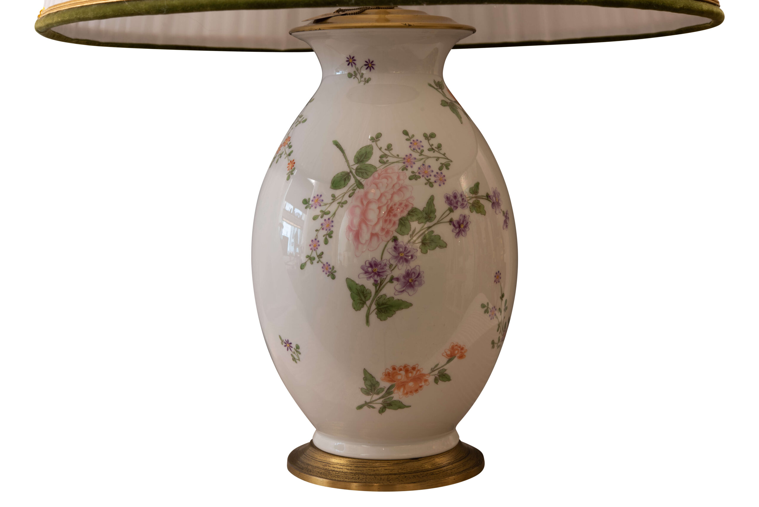 Table lamp by Augarten with floral patterns, porcelain, dimensions: height 78 cm, width 47 cm | Tischlampe von Augarten mit floralen Mustern, Porzellan, Maße: Höhe 78 cm Breite 47 cm