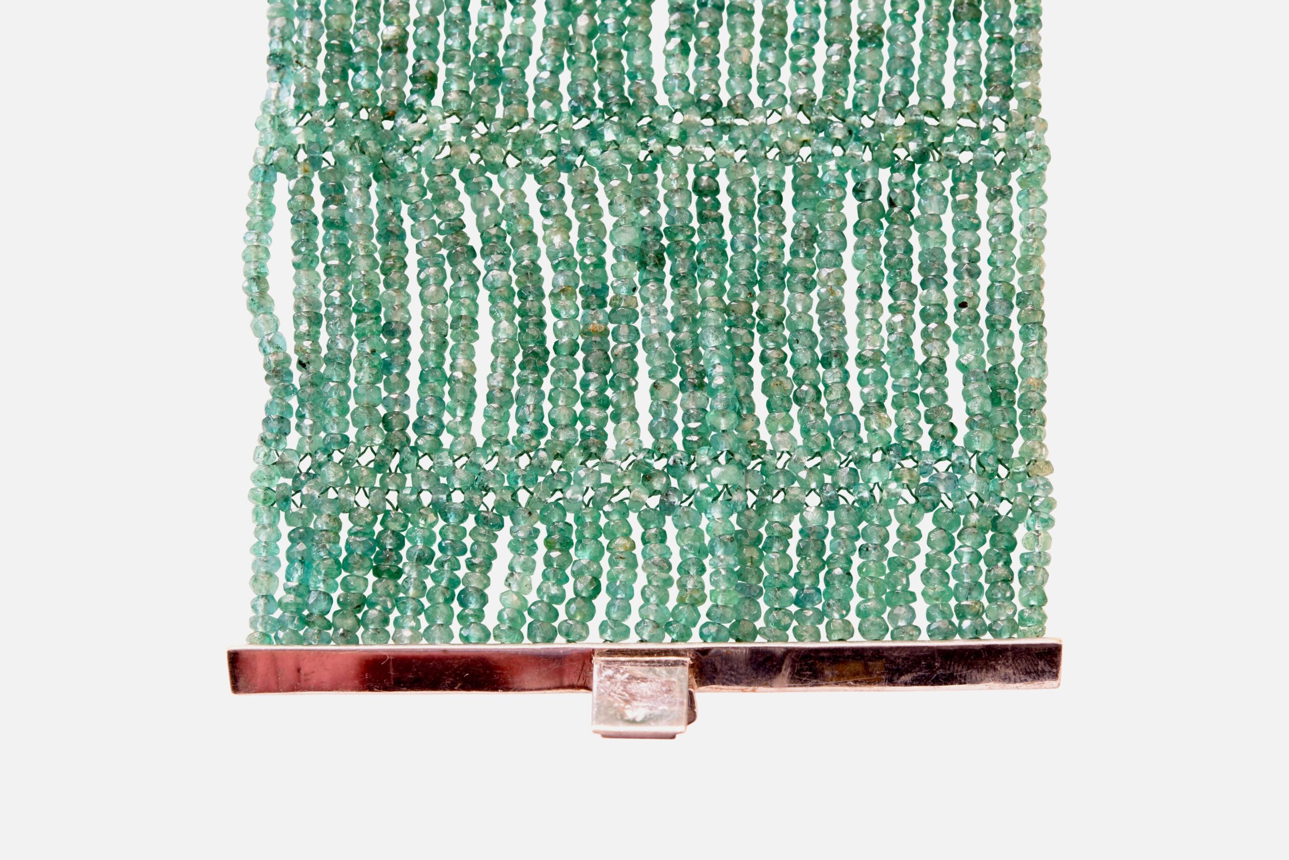 Armband Weißgold 750/feinschliff, mit Brillanten, zusammen ca. 1,45 ct H/si, und 4 Smaragden im Quadratschliff, zusammen ca. 0,68 ct, sowie Onyxplatten quadratisch, ca. 1,45 cm, und Smaragde, zusammen ca. 250 ct, Gesamtgewicht 62,3 g, Länge 18,5 cm | Bracelet white gold 750/fine-cut, with brilliant-cut diamonds, together approx. 1.45 ct H/si, and 4 square-cut emeralds, together approx. 0.68 ct, as well as square onyx plates, approx. 1.45 cm, and emeralds, together approx. 250 ct, total weight 62.3 g, length 18.5 cm