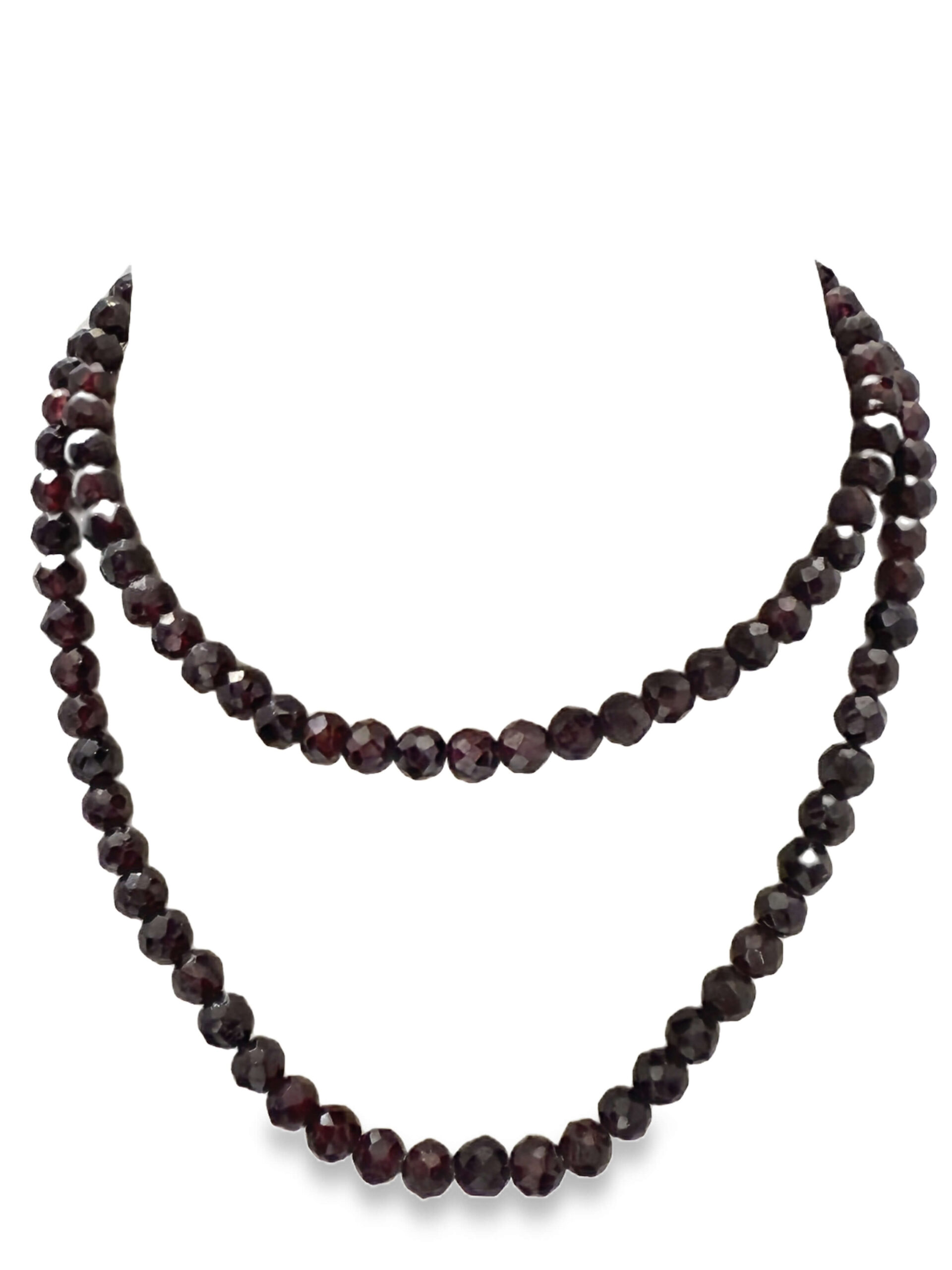 Granatkette mit ca. 390 ct, Silber 925/fein, Springring und Öse, Gesamtgewicht 78,5 g, Länge ca. 80 cm | Garnet Necklace approx. 390 ct, with Silver 925/fine Spring Ring and Eyelet, total weight 78.5 g, length approx. 80 cm