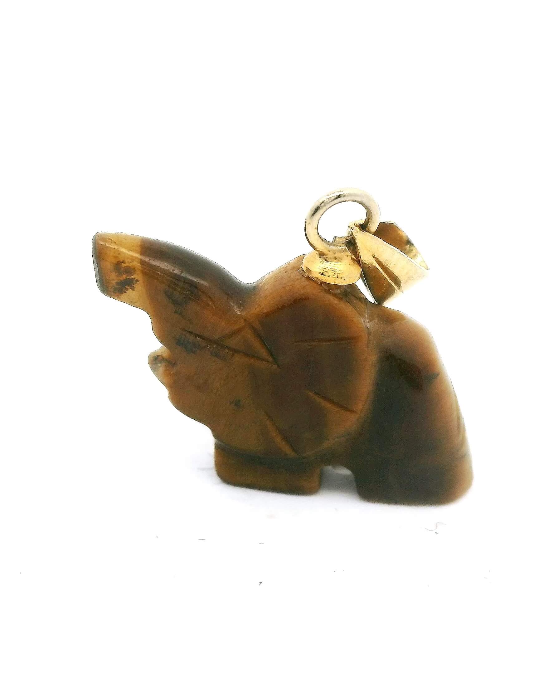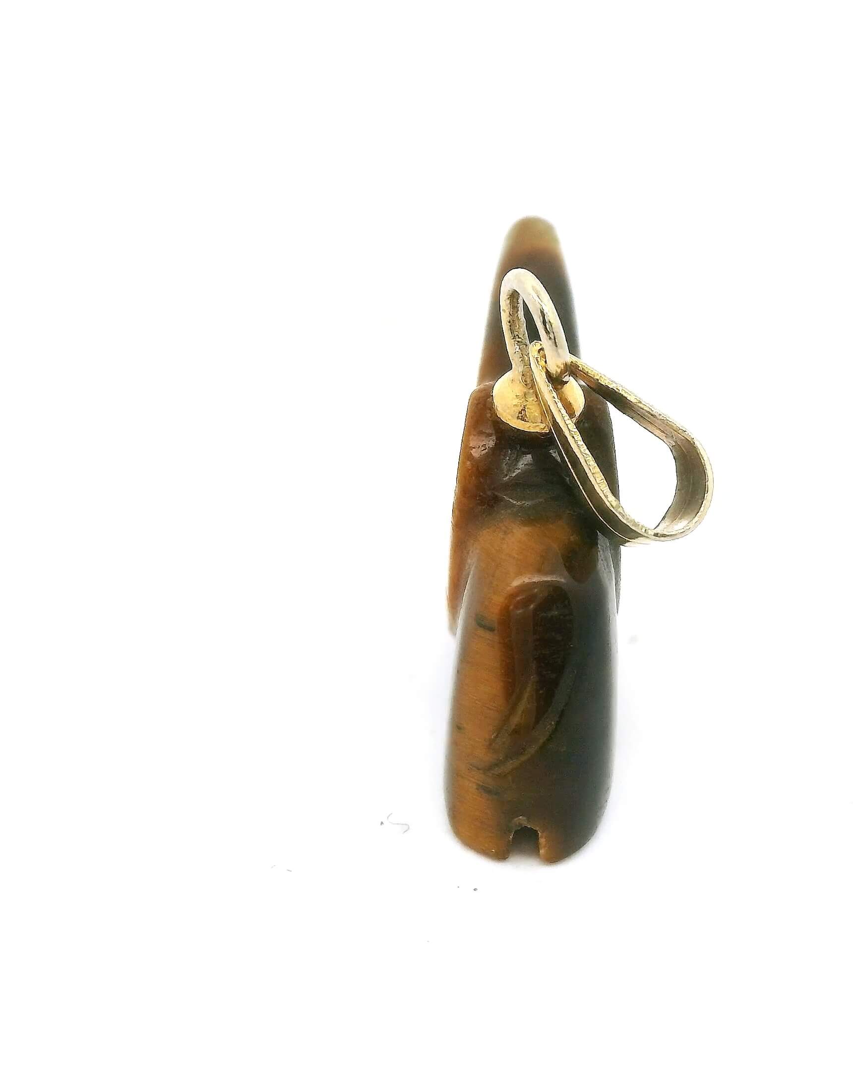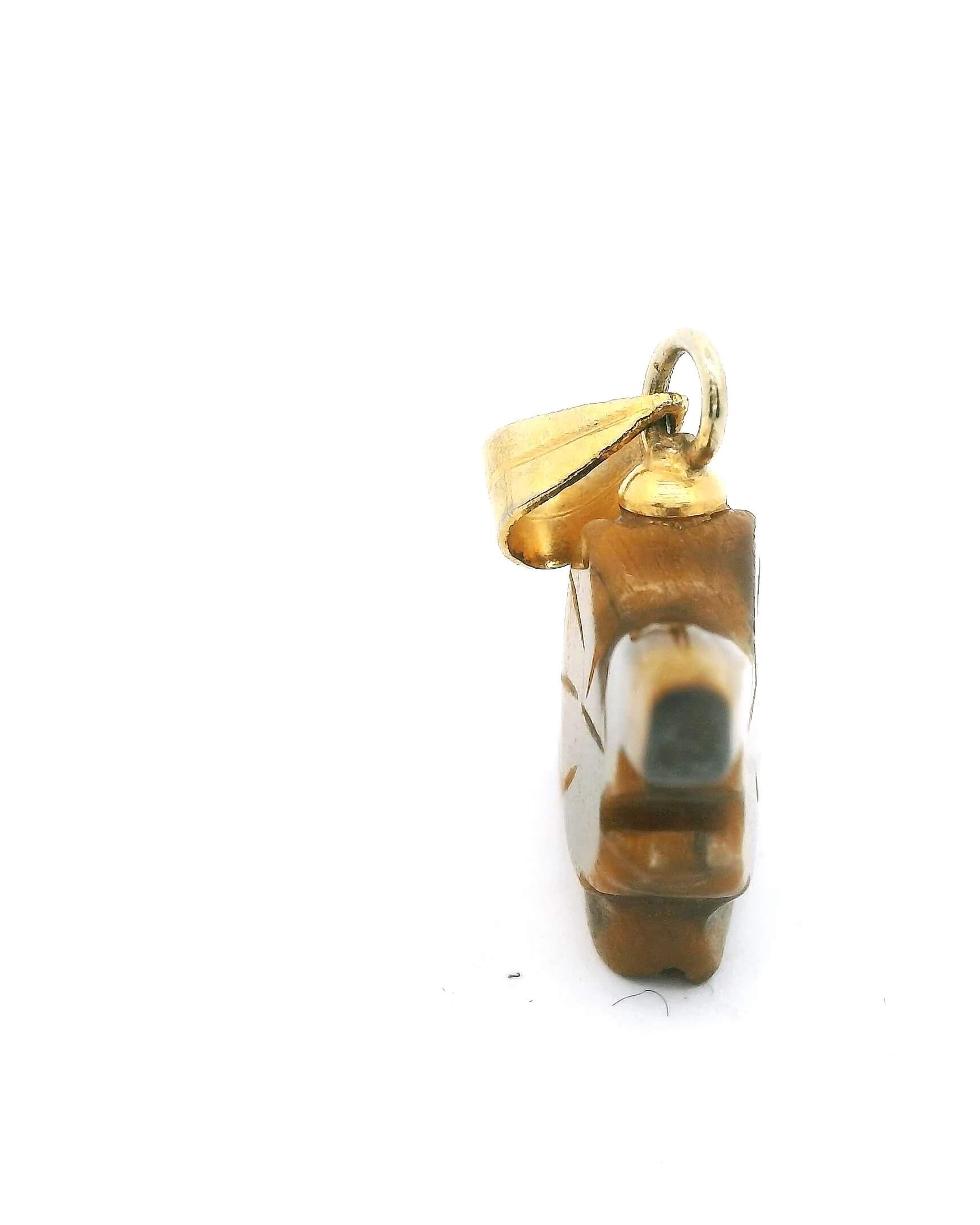 Anhänger Elefant aus Tigerauge mit vergoldeten Kolben, Gesamtgewicht 2,2 g, Maße: 17,5 × 23 mm | Elephant Pendant in Tiger’s Eye with Gilded Mounts, Total Weight 2.2 g, Dimensions: 17.5 × 23 mm