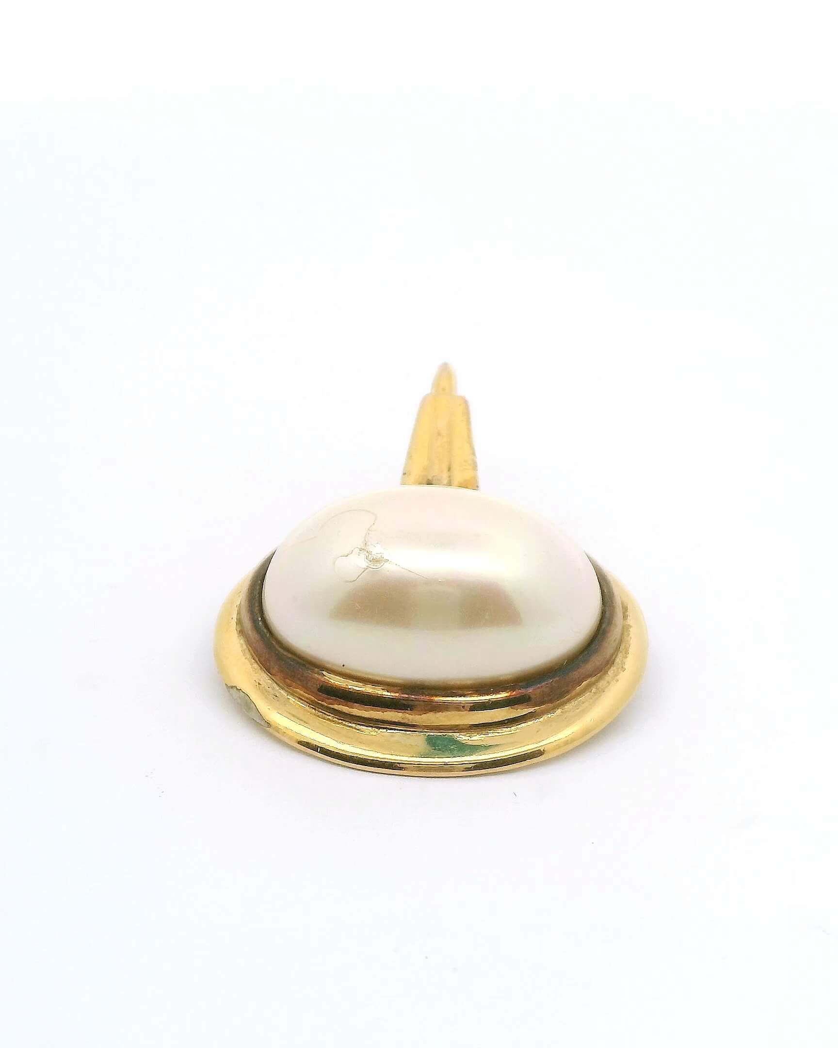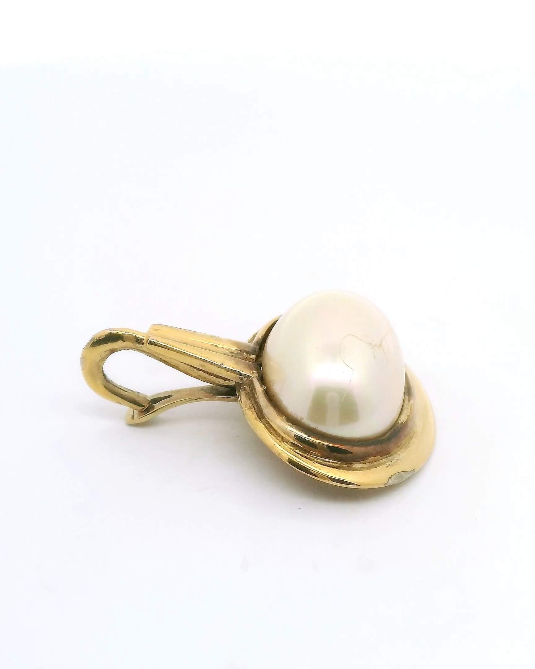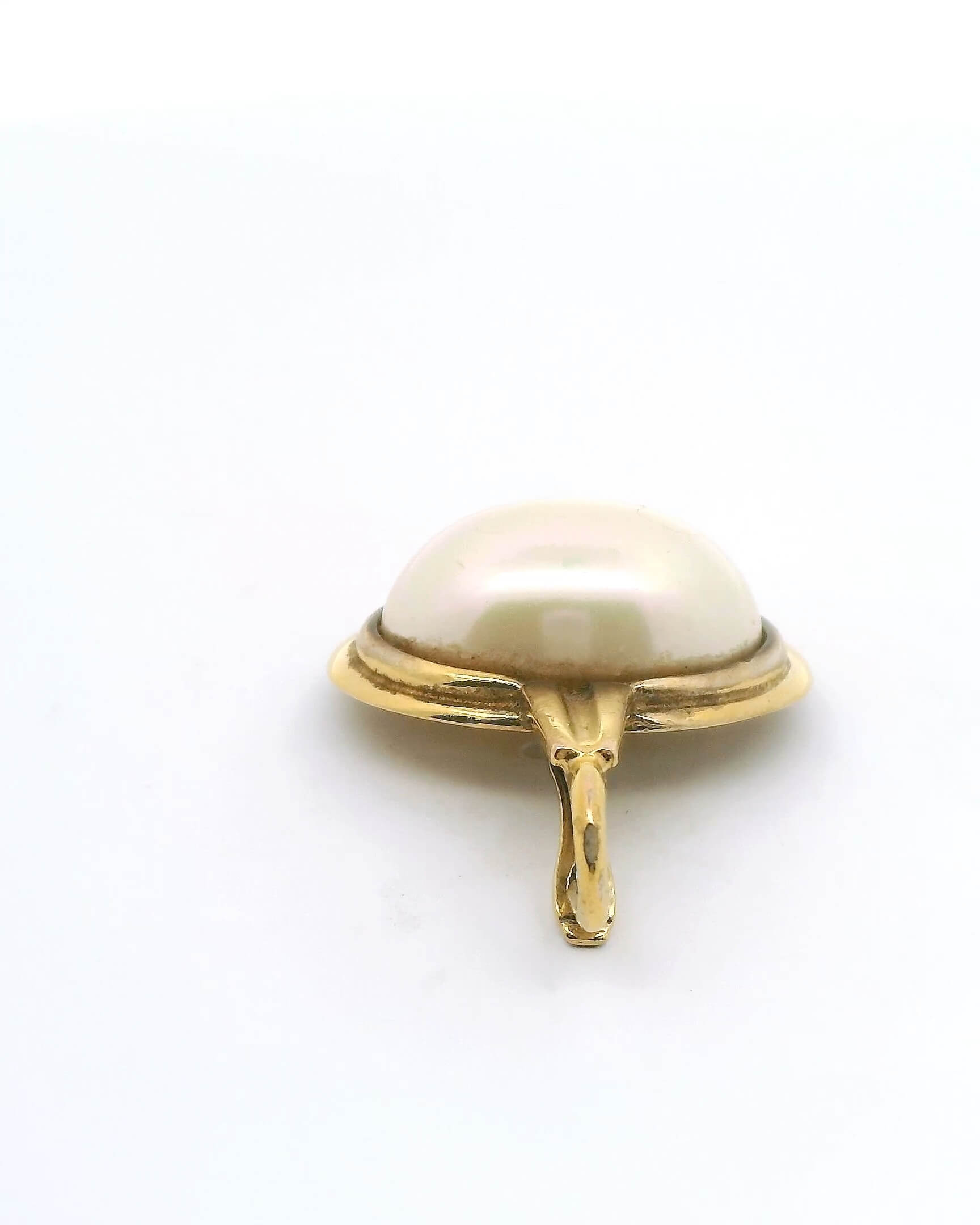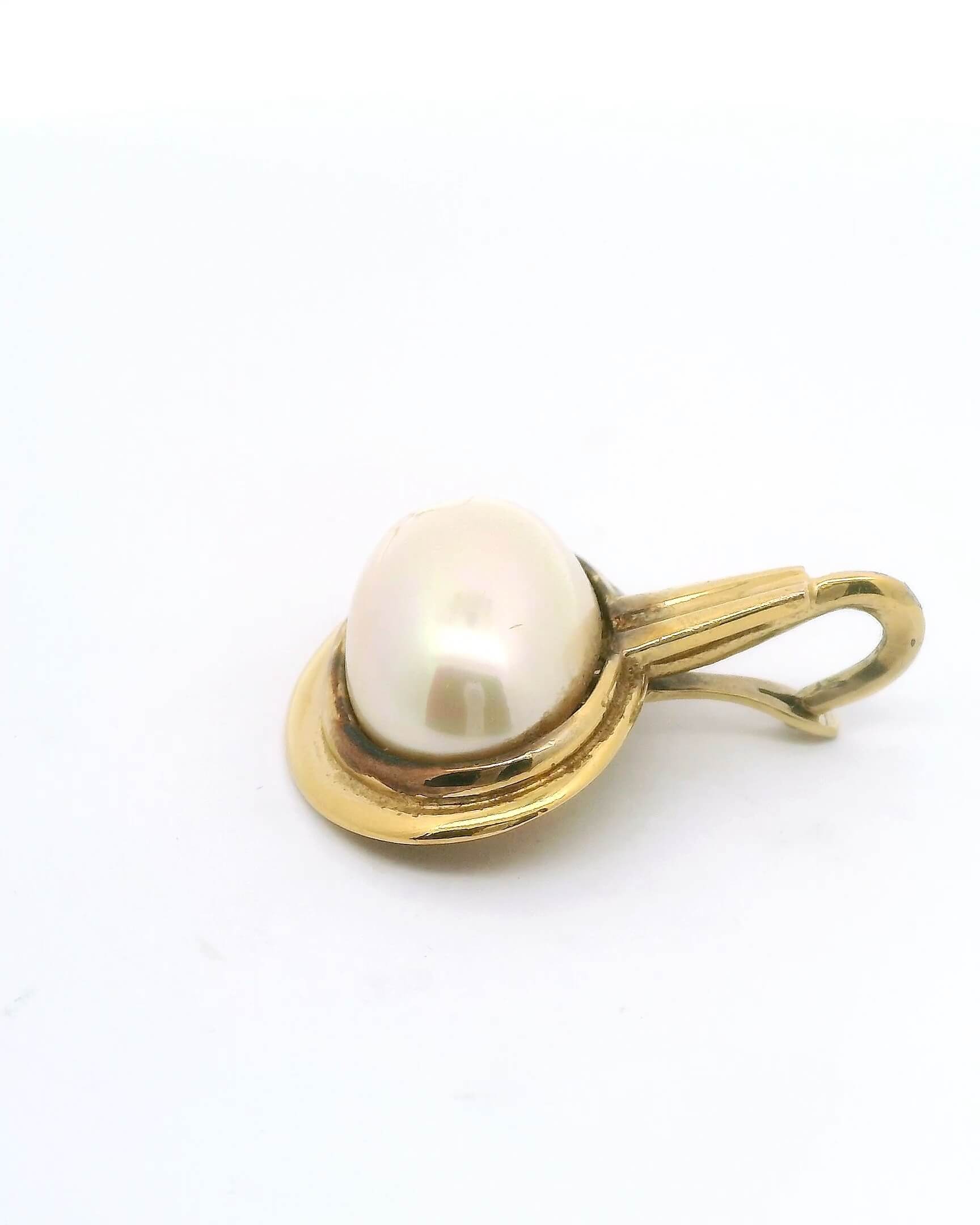 Anhänger aus Silber 925/fein, vergoldet, mit ovaler Majorica-Perle (leicht beschädigt) und Klappöse, Gesamtgewicht 8,2 g | Pendant in 925/fine Silver, Gilded, with Oval Majorica Pearl (slightly damaged) and Hinged Bail, Total Weight 8.2 g
