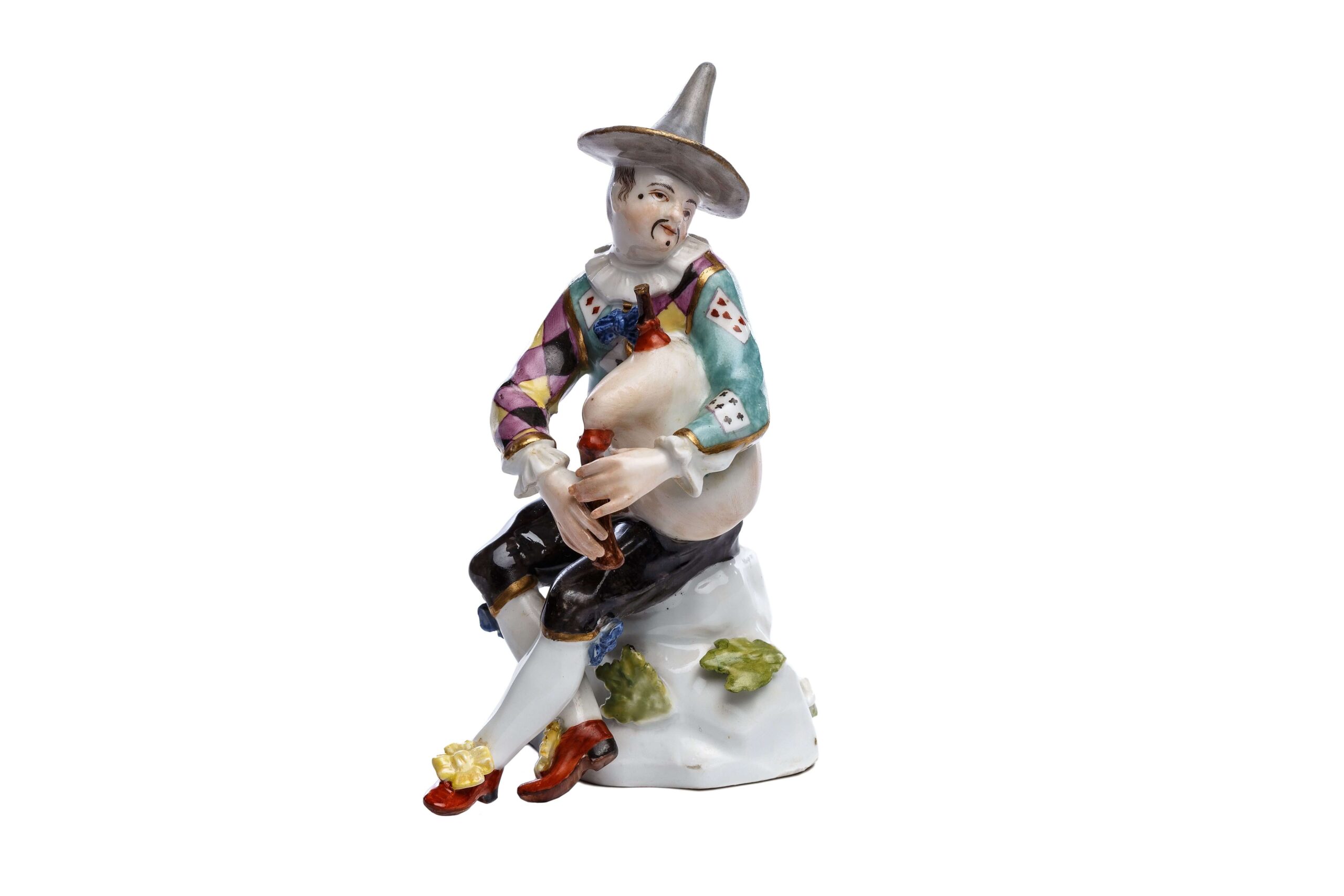 Figur Harlekin mit Dudelsack, Meissen 1720 | Figurine Harlequin with Bagpipe, Meissen 1720