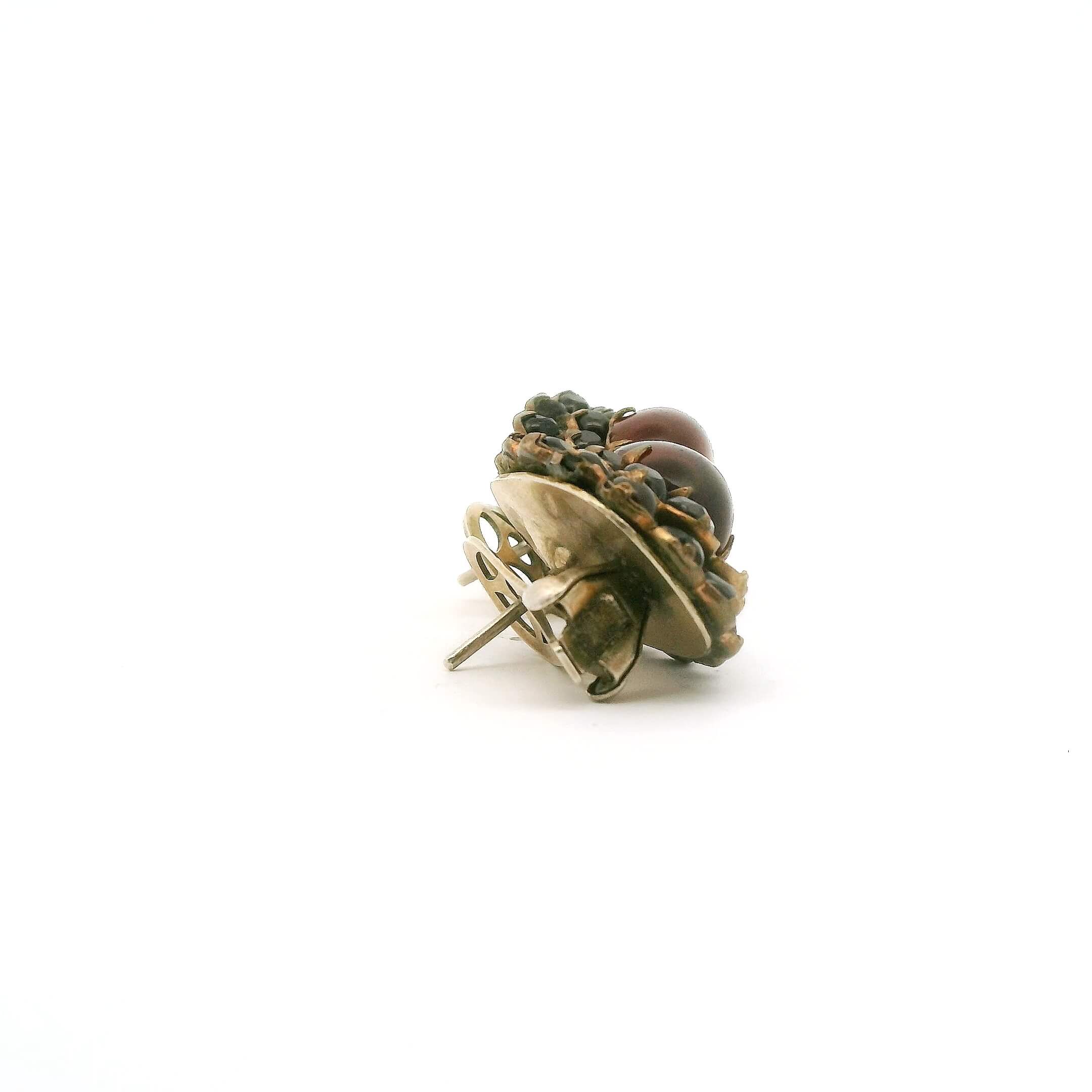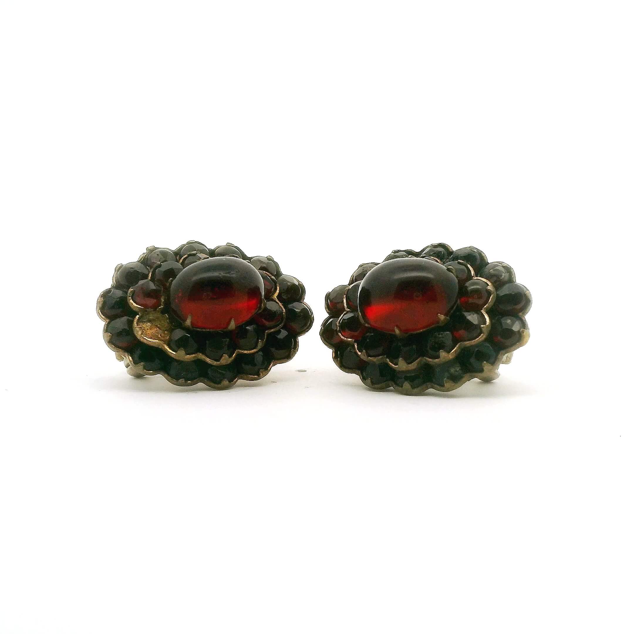 Ohrclipse aus Silber 925/fein mit Granaten, ein Stein fehlt, Gesamtgewicht 16,6 g | Ear clips in 925/fine silver with garnets, one stone missing, total weight 16.6 g