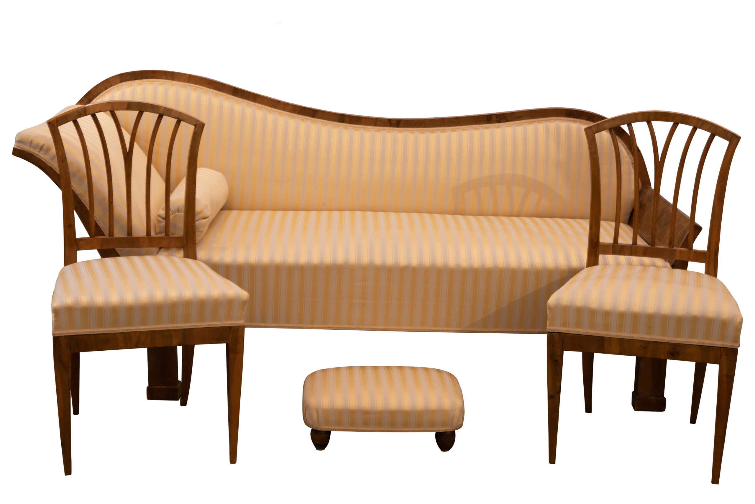 Biedermeier Style Seating Set Consisting Of A Sofa And Two Chairs, Sofa Dimensions: 190 × 80 × 20 cm, Chair Dimensions: 48 × 90 × 46 cm | Sitzgarnitur im Biedermeier-Stil bestehend aus einem Sofa und zwei Stühlen, Maße Sofa: 190 × 80 × 20 cm, Maße Stühle: 48 × 90 × 46 cm