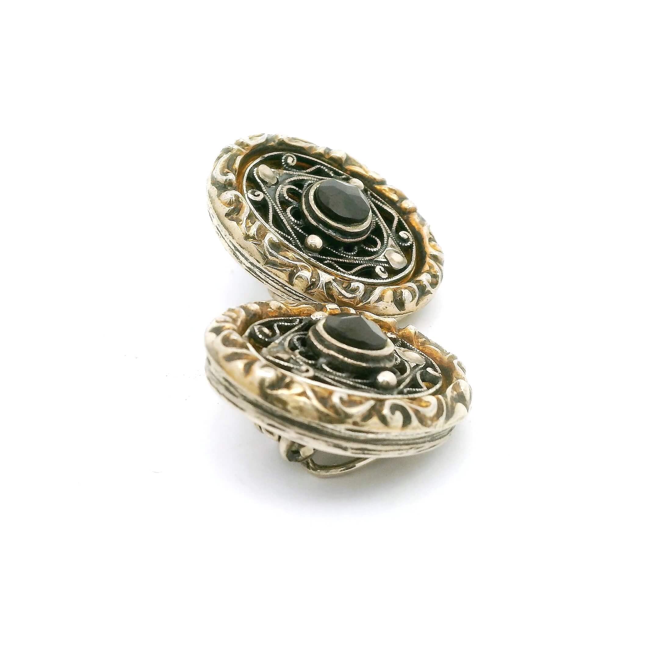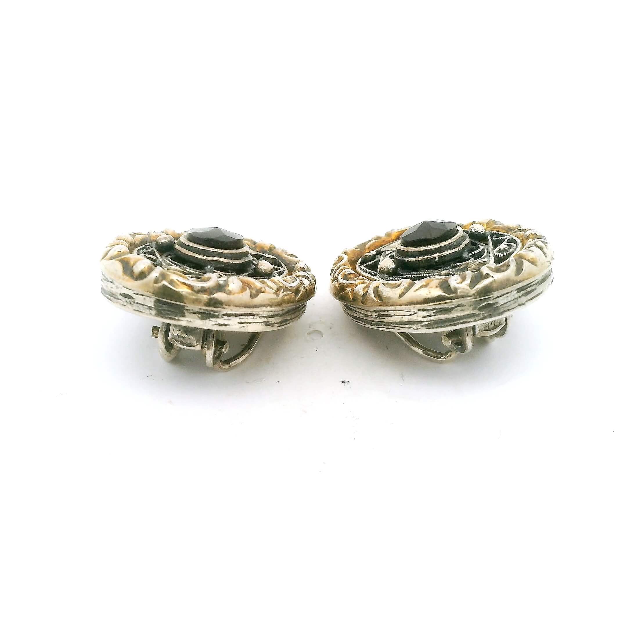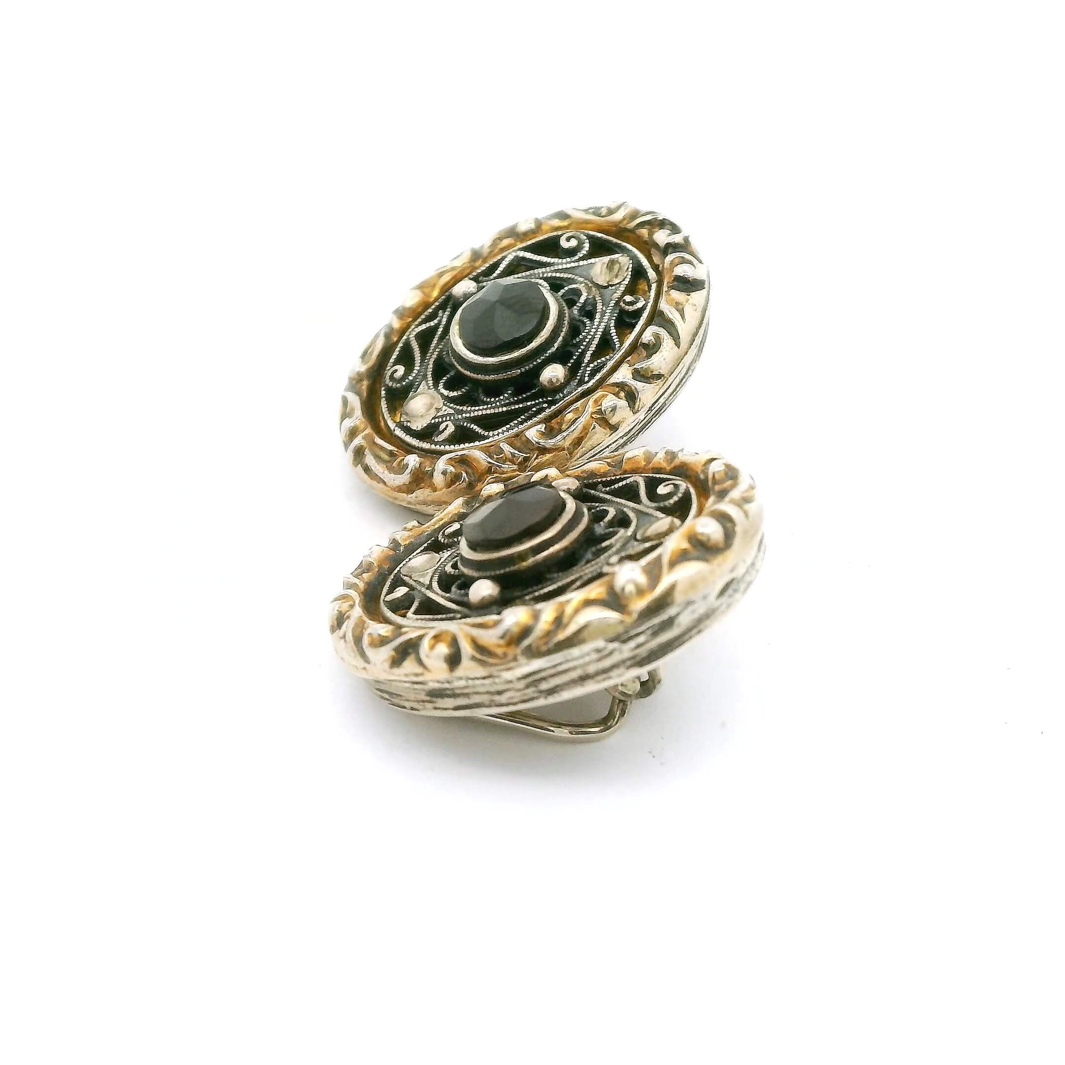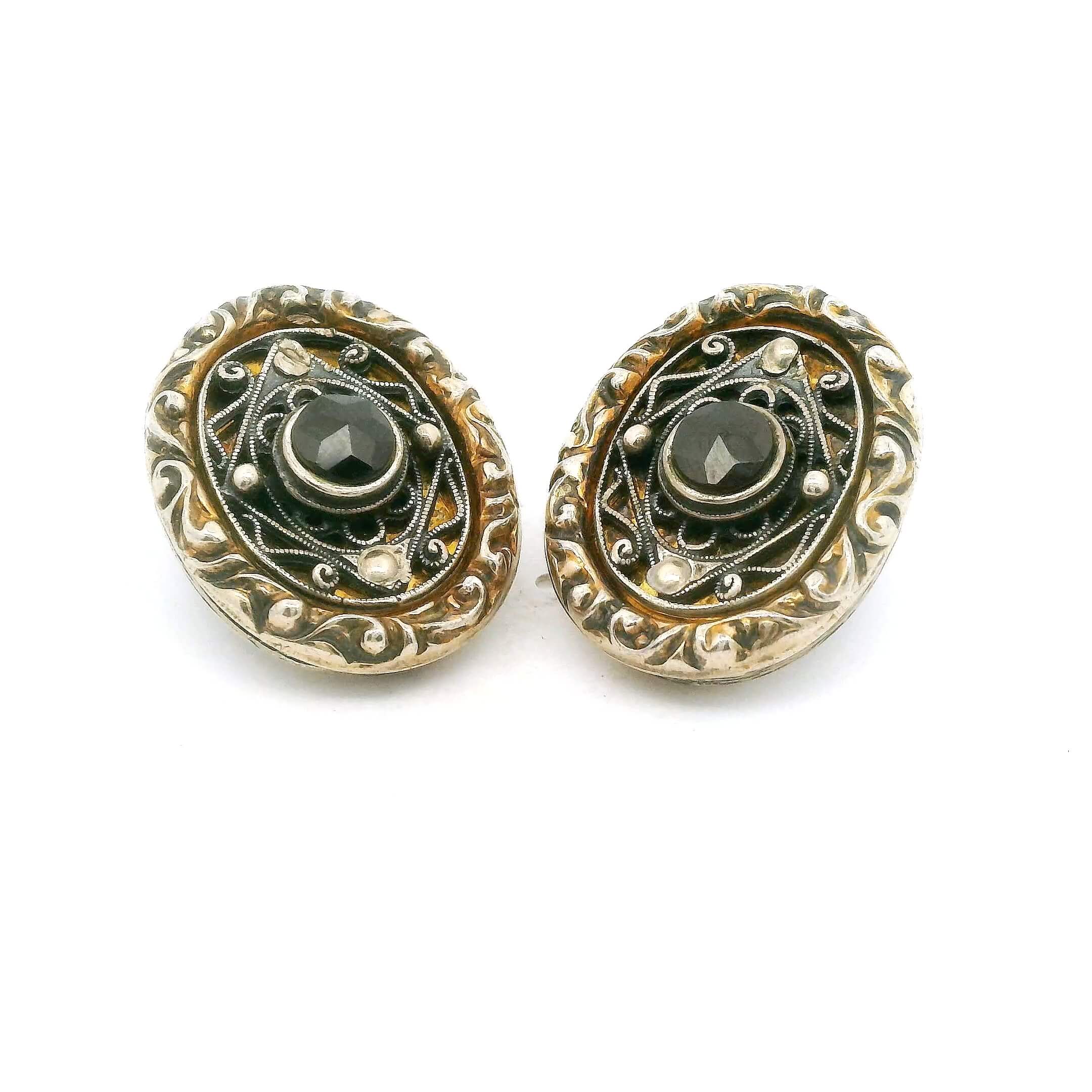 Ohrclipse aus Silber 800/fein, teilweise vergoldet, besetzt mit zwei Granaten, Gesamtgewicht 14,1 g | Ear clips in 800/fine silver, partially gilded, set with two garnets, total weight 14.1 g