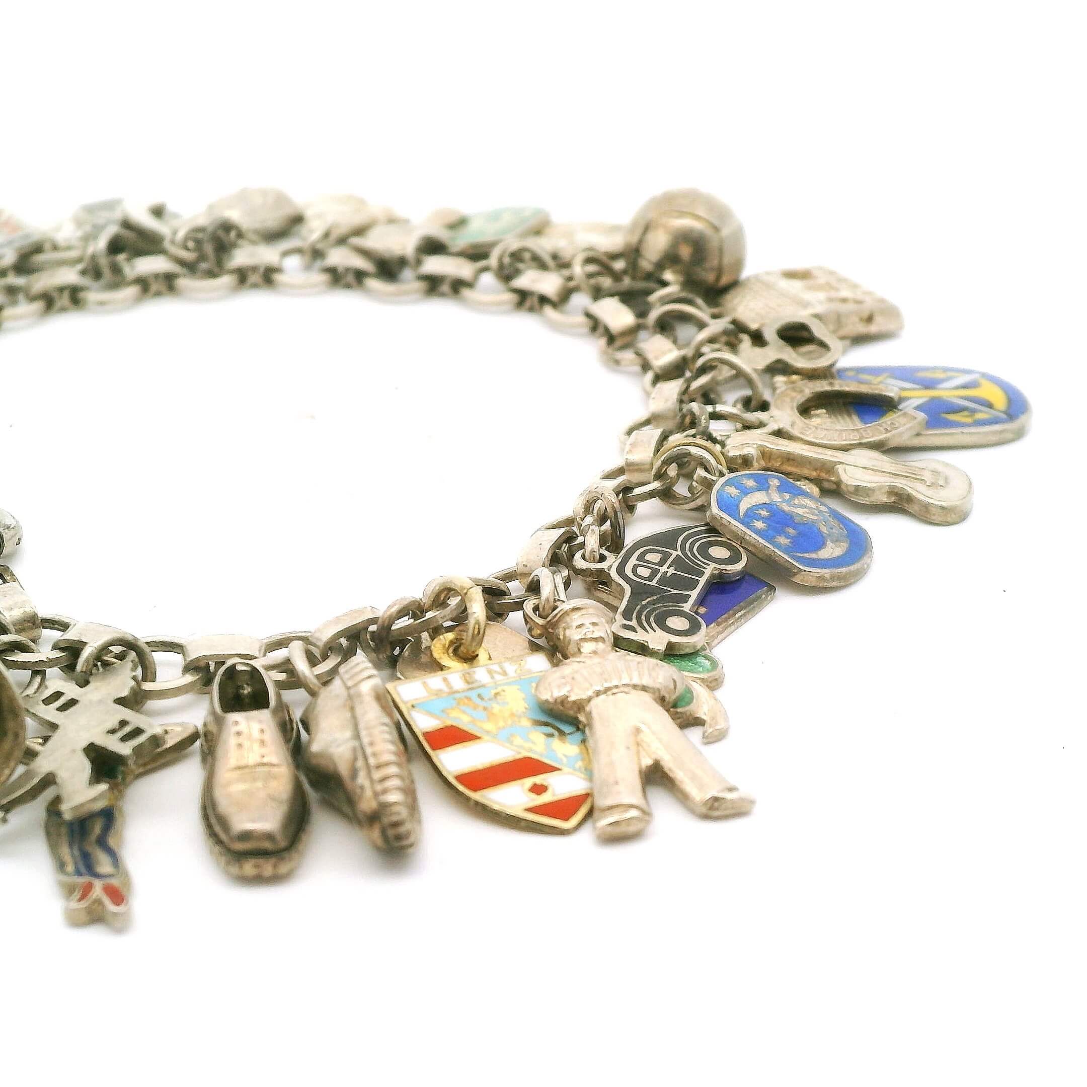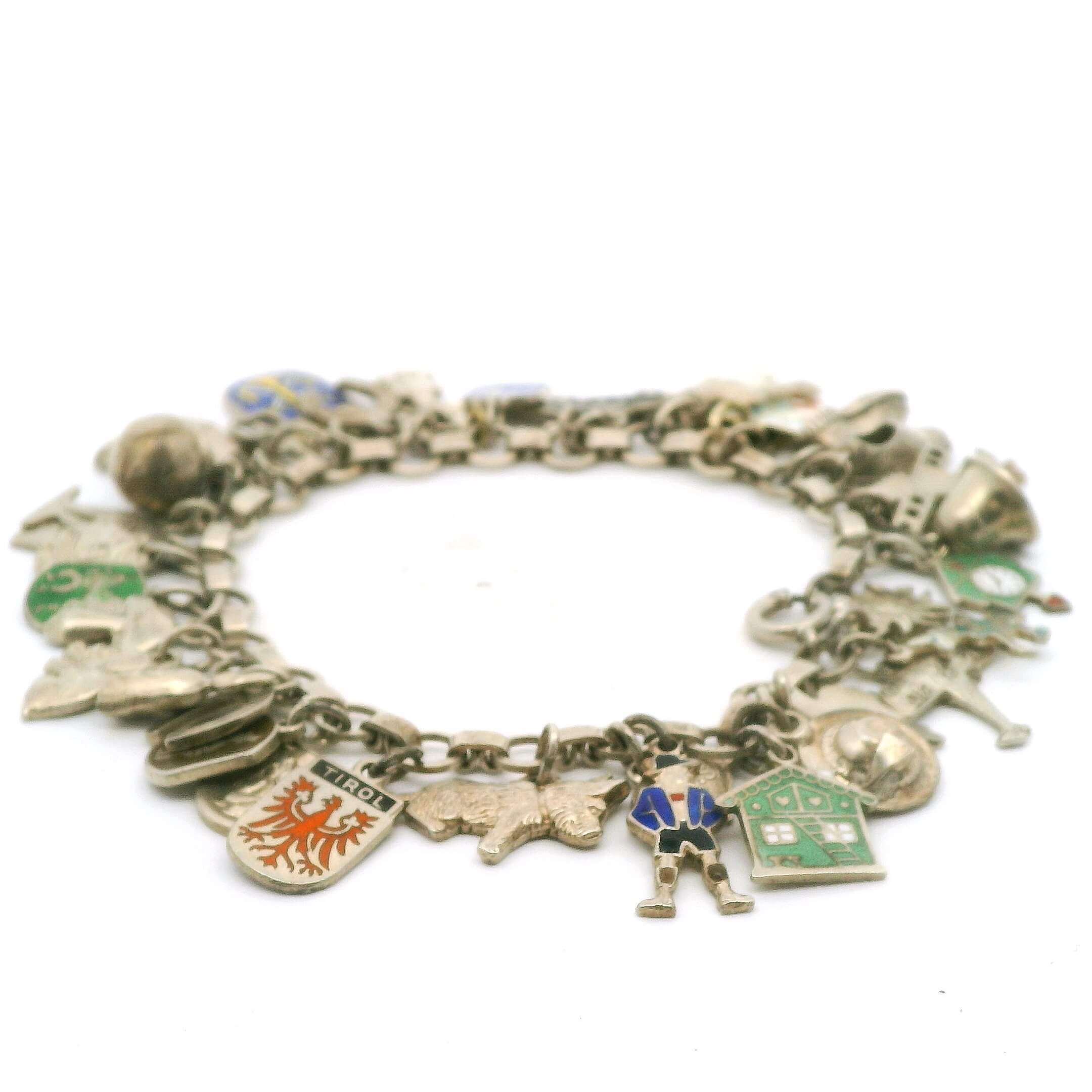 Armband Silber 925/fein (Bettelarmband) mit maximalen Anzahl von Anhängern, Gesamtgewicht 33,1g Länge 15,5cm | Bracelet silver 925/fine (charm bracelet) with maximum number of pendants, total weight 33.1 g, length 15.5 cm