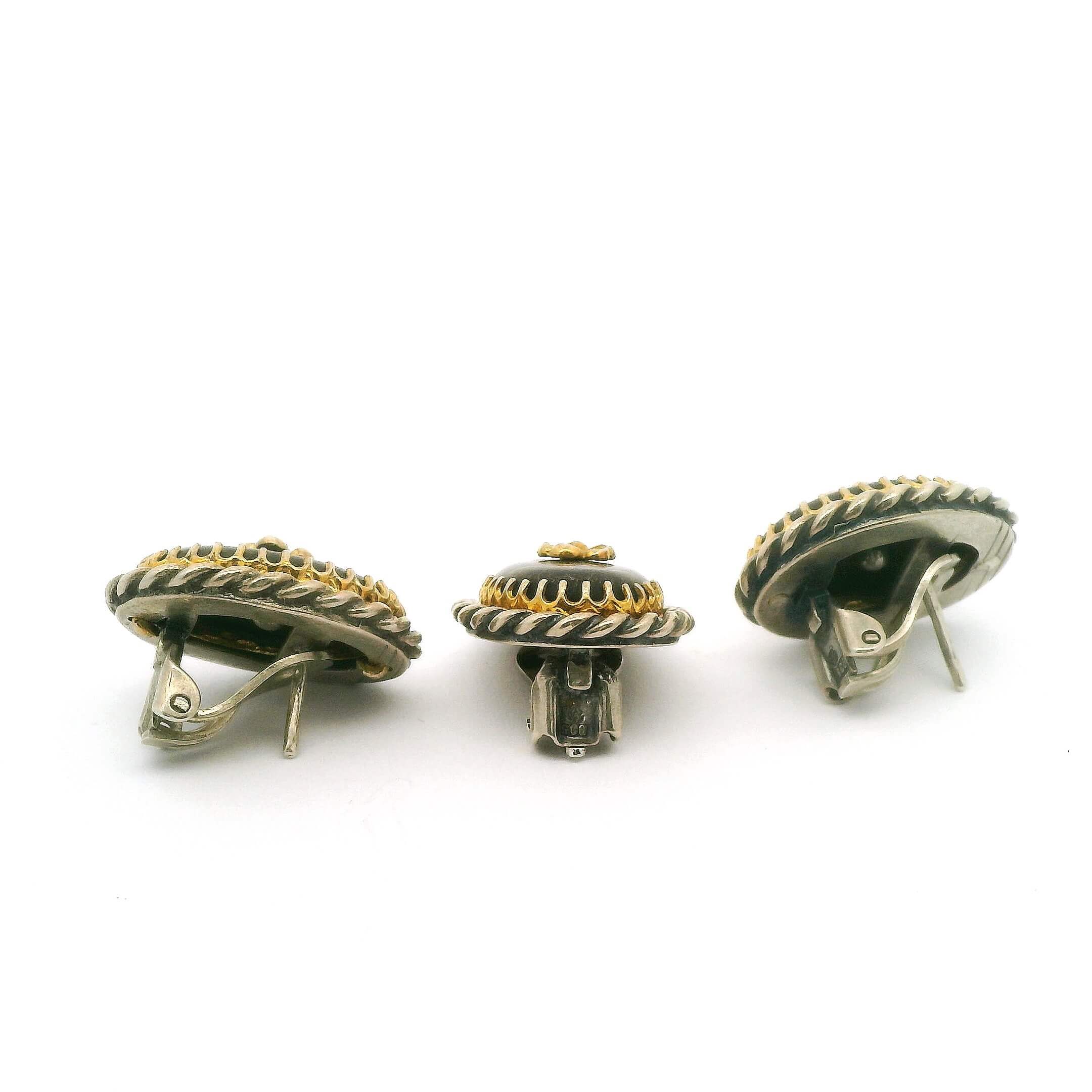 Drei Stück Ohrclipse aus Silber 835/fein, teilweise vergoldet, besetzt mit gefärbtem Achat (Schwarz), Gesamtgewicht 18,4 g | Three pairs of ear clips in 835/fine silver, partially gilded, set with dyed agate (black), total weight 18.4 g