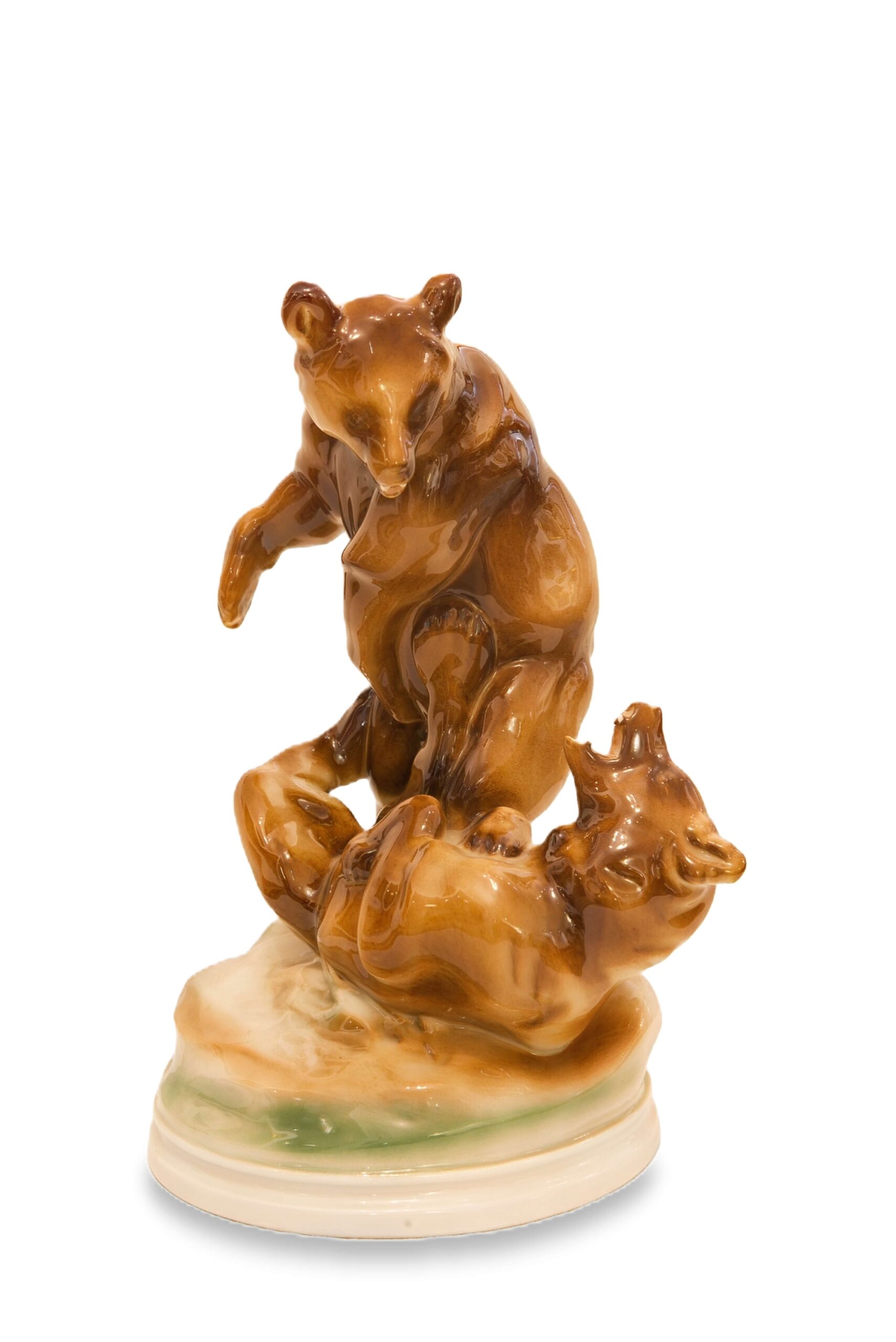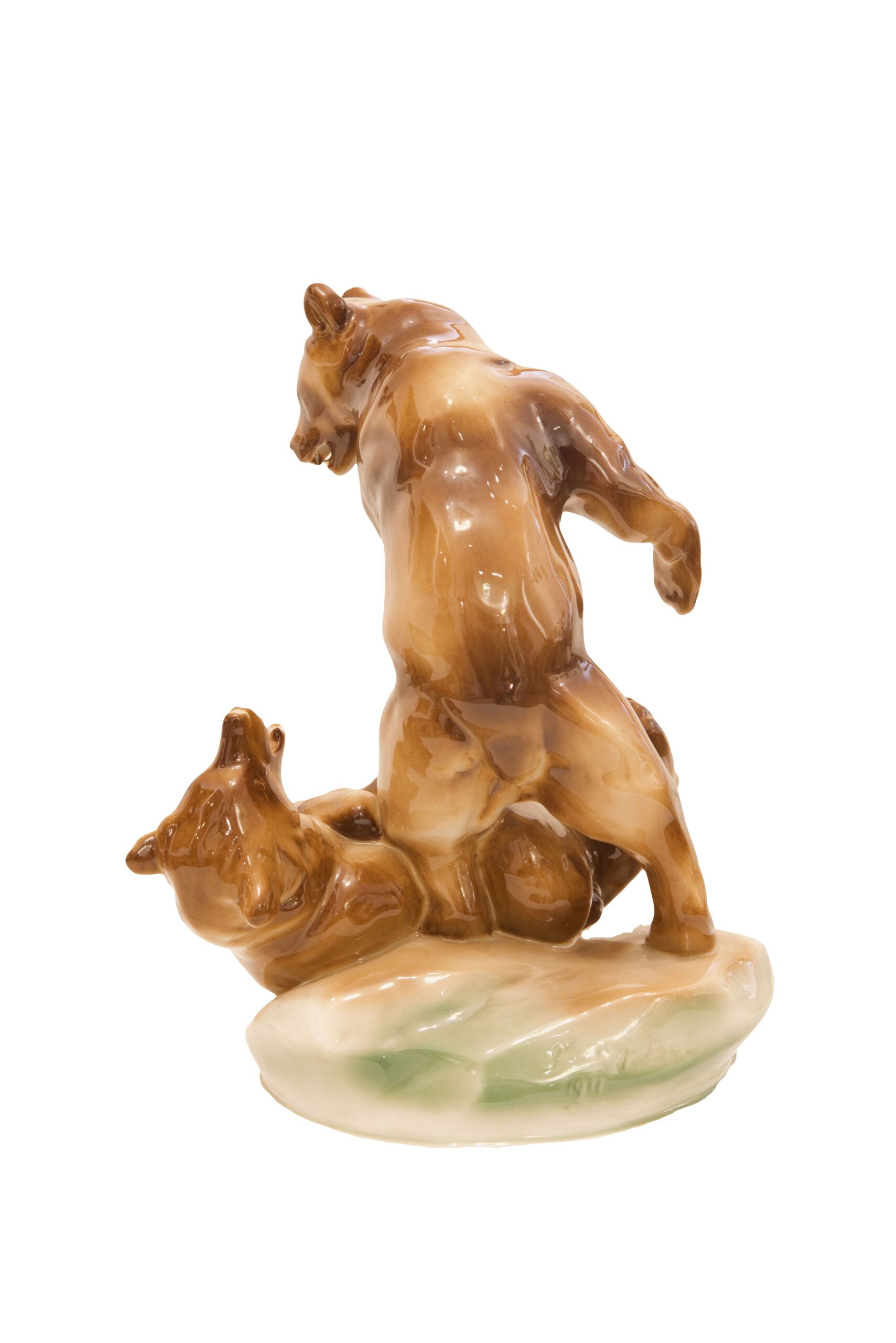Porzellanfigur, spielende Jungbären, Zsolnay Pecs (Fünfkirchen), Maße: ca. 30 cm | Porcelain Figure, Playing Bear Cubs, Zsolnay Pecs (Fünfkirchen), dimensions: approx. 30 cm