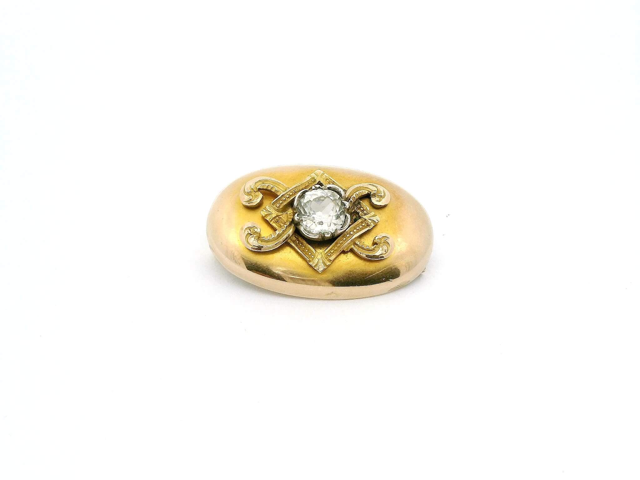Brosche Gelbgold 333/fein mit einem synthetischen Stein, Gesamtgewicht 4,5 g | Brooch Yellow Gold 333/Fine With One Synthetic Stone, Total Weight 4.5 g