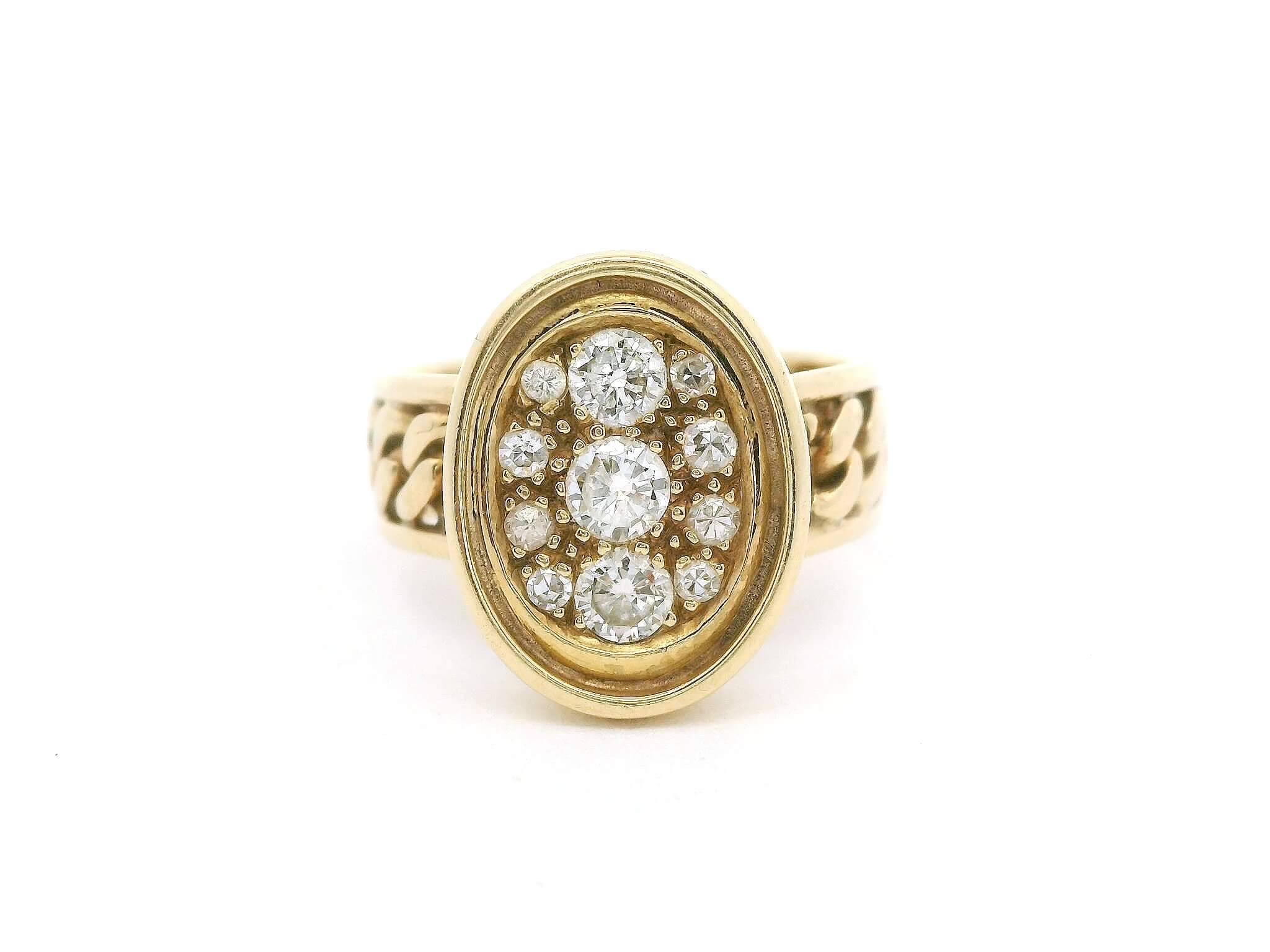 Ring aus Gelbgold 585/fein mit Brillanten von zusammen circa 0,522 ct, Farbe H, Reinheit Si, Gesamtgewicht 6,5 g, Ringweite 52 | Ring in Yellow Gold 585/Fine with Brilliant-Cut Diamonds Totaling Approx. 0.522 ct, Color H, Clarity Si, Gross Weight 6.5 g, Ring Size 52