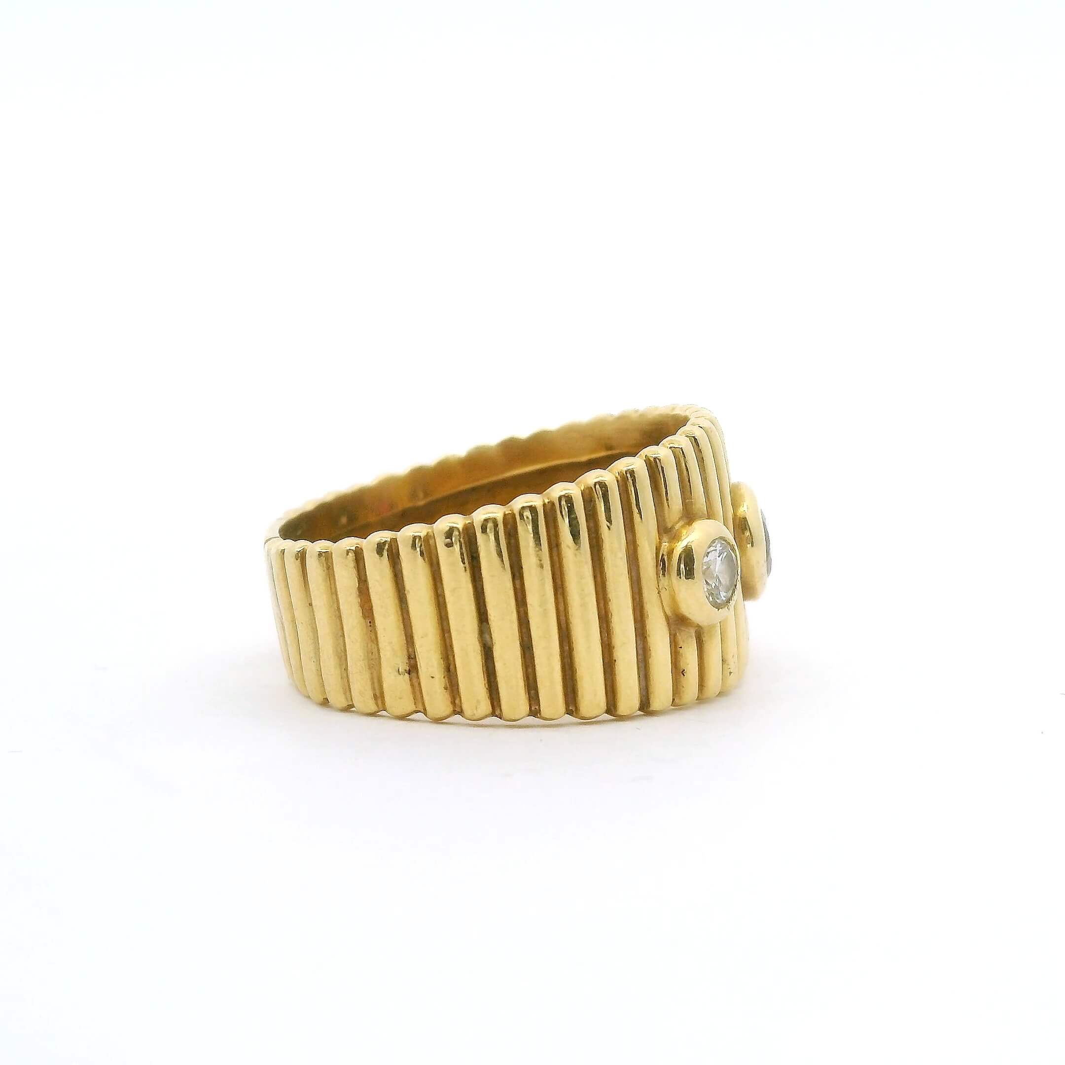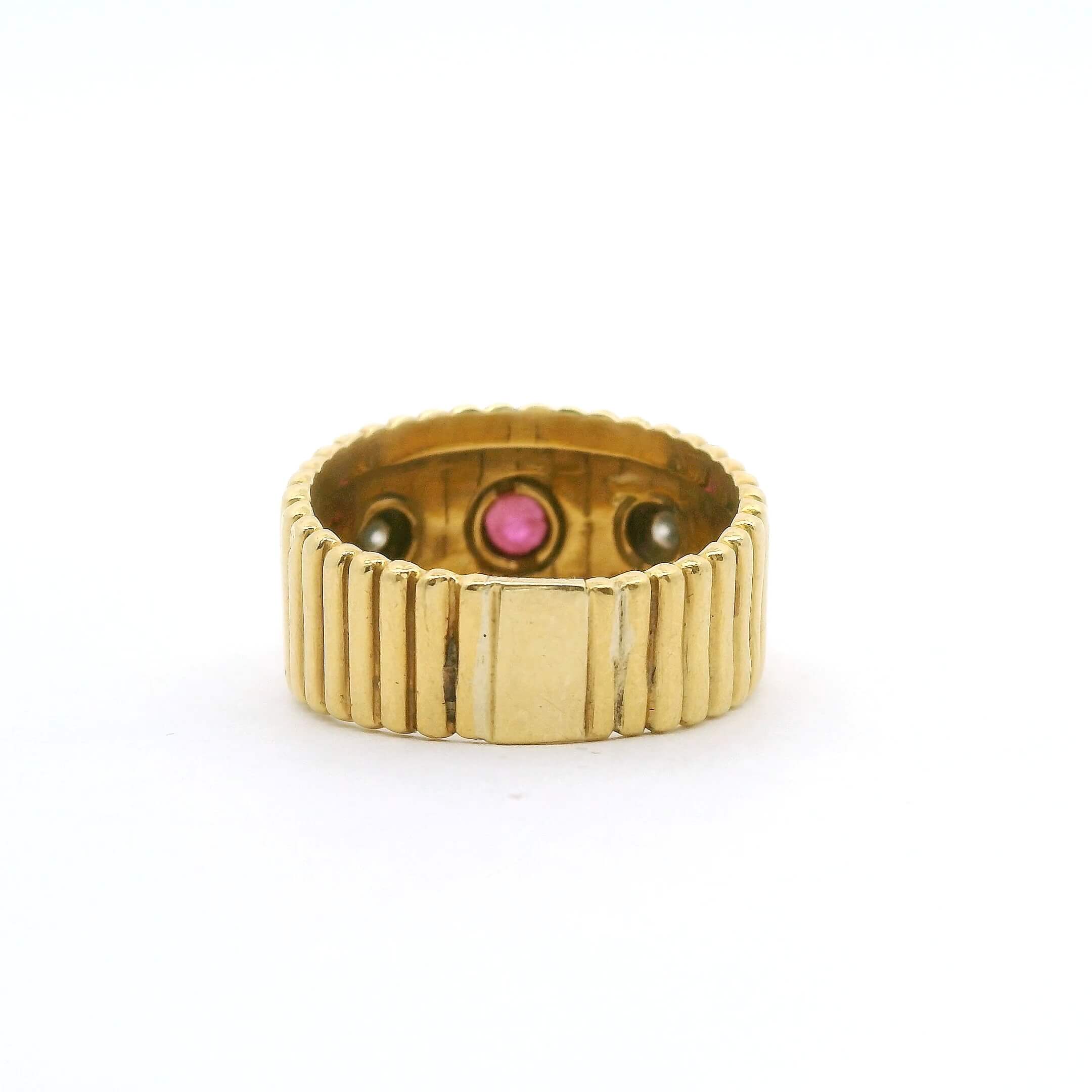 Ring aus Gelbgold 585/fein mit fünf Brillanten von zusammen circa 0,20 ct und einem Rubin von circa 0,30 ct, Gesamtgewicht 8,23 g, Ringweite 59 | Ring in Yellow Gold 585/Fine with Five Brilliant-Cut Diamonds Totaling Approx. 0.20 ct and a Ruby of Approx. 0.30 ct, Gross Weight 8.23 g, Ring Size 59