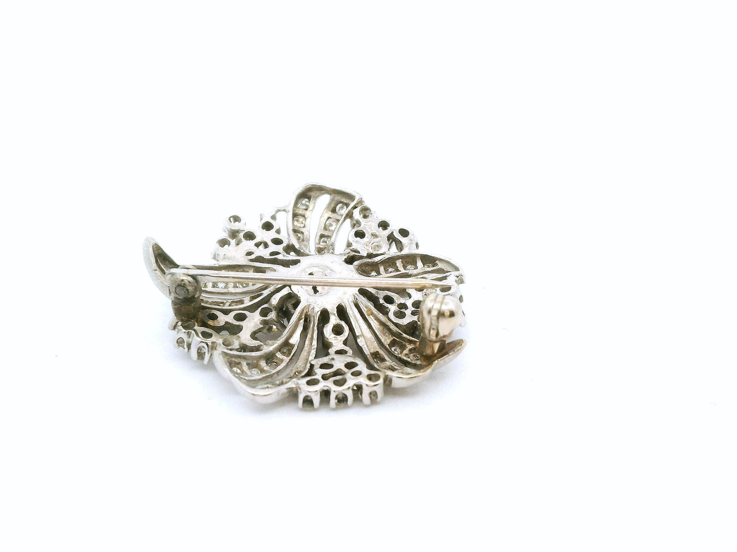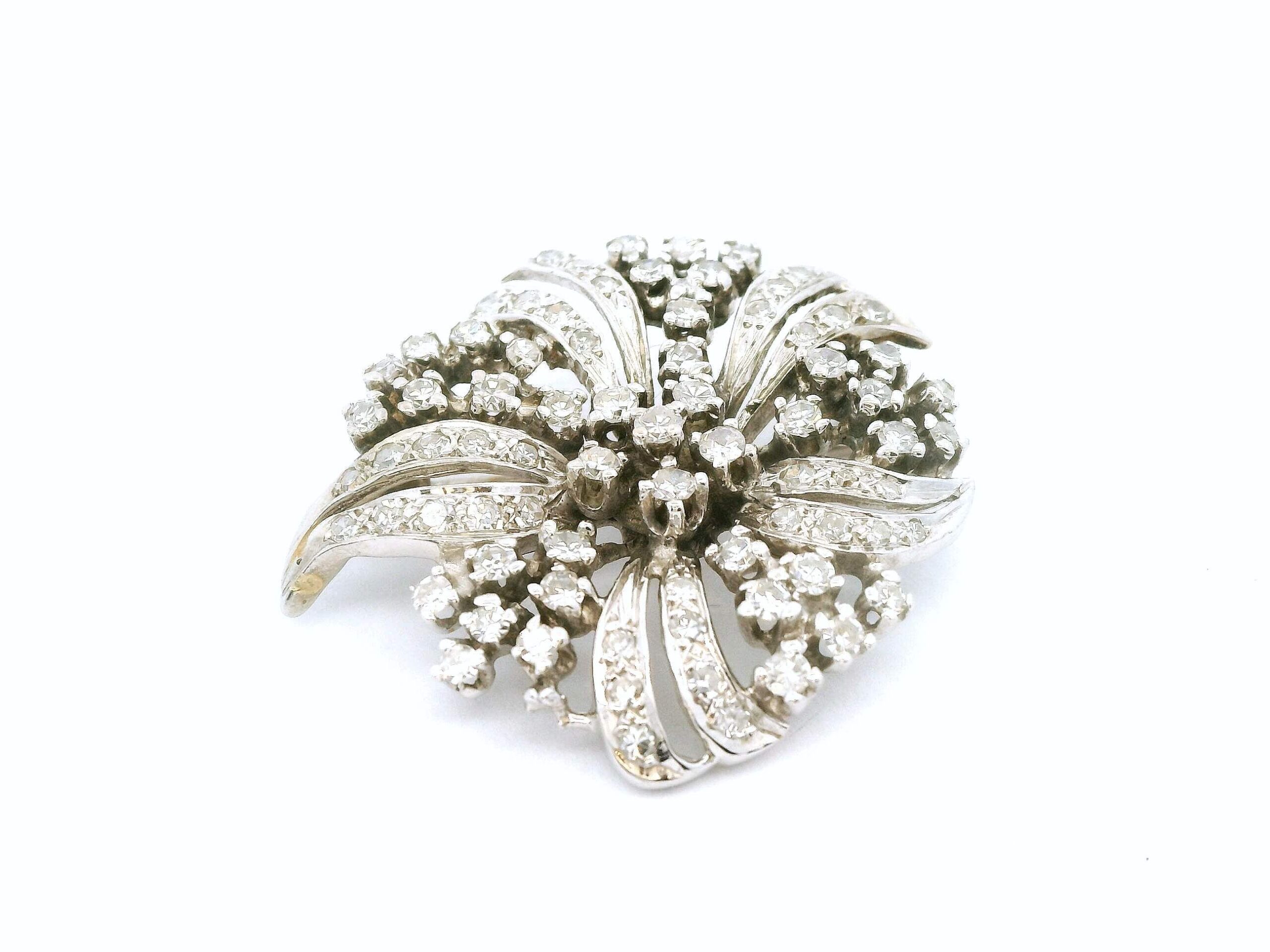 Brosche aus Weißgold 585/fein mit 37 Diamanten im Achtkantschliff von zusammen circa 0,50 ct, Gesamtgewicht 5,97 g | Brooch in White Gold 585/Fine with 37 Diamonds in Old Eight-Cut, Totaling Approx. 0.50 ct, Gross Weight 5.97 g