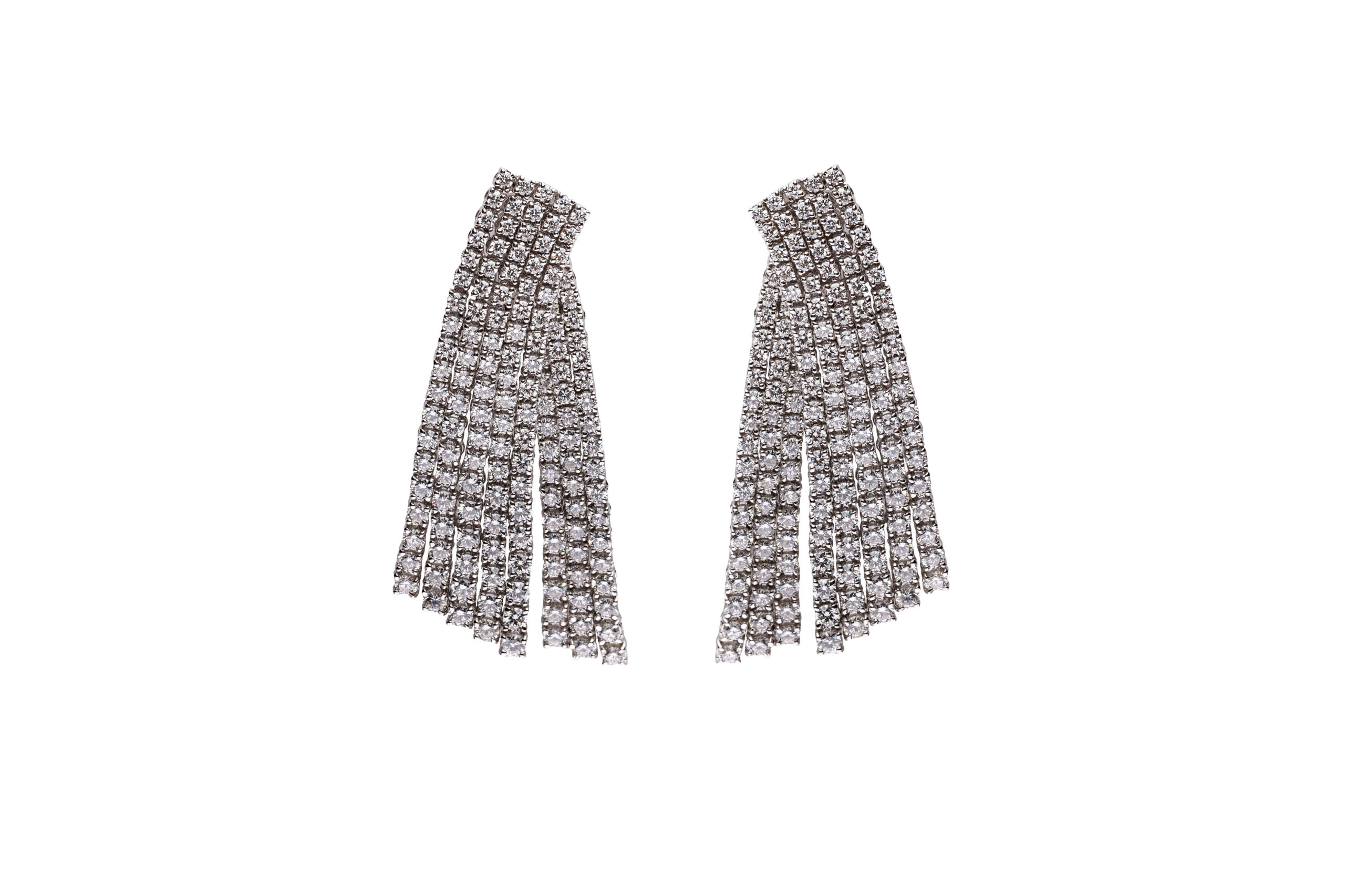 Ohrclipse aus Weißgold 750/fein mit Brillanten von zusammen circa 14,60 ct, Gesamtgewicht 45 g | Earrings in White Gold 750/Fine with Brilliant-Cut Diamonds Totaling Approx. 14.60 ct, Gross Weight 45 g
