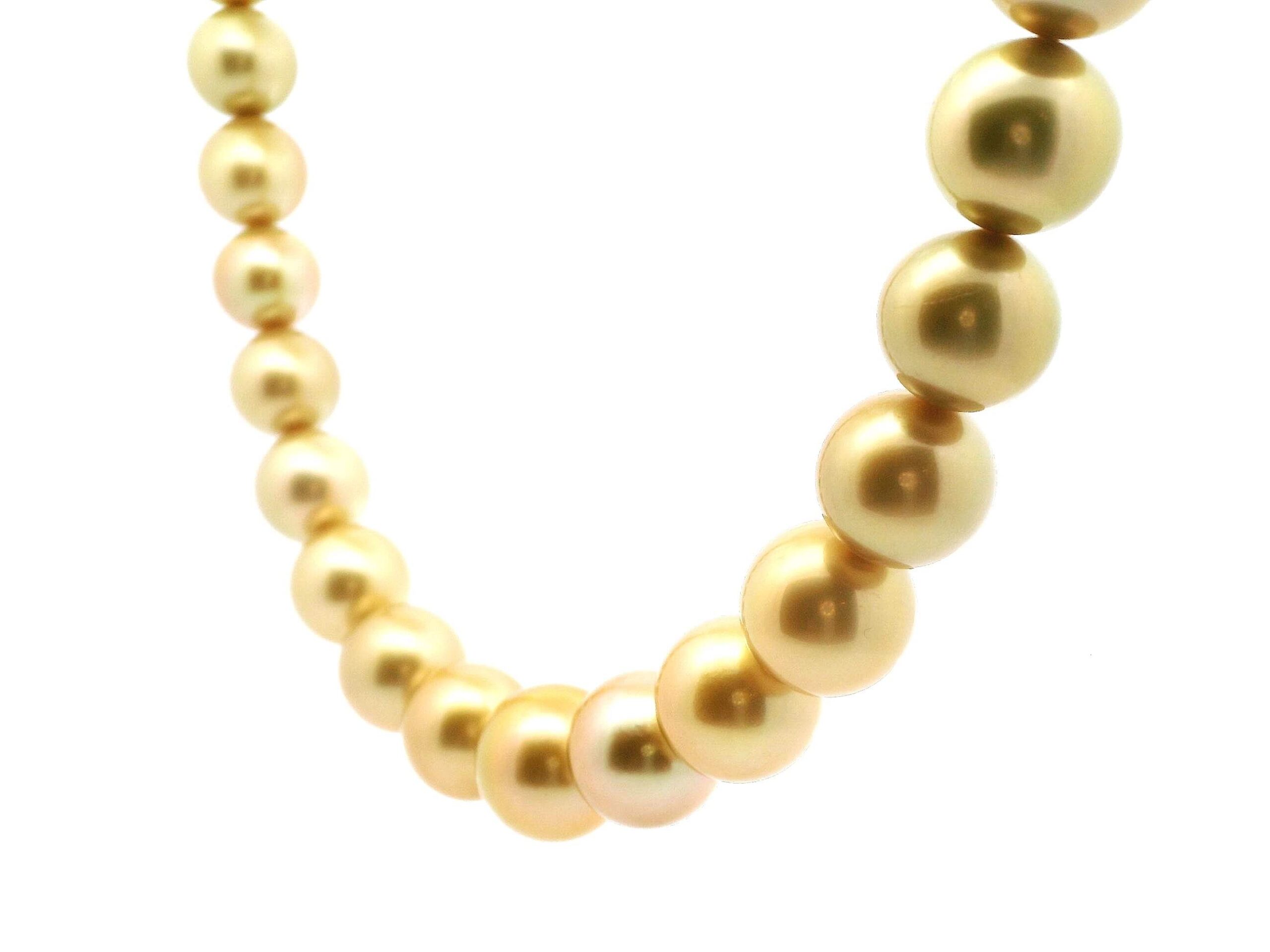Südsee-Kulturperlenkette im Verlauf aus 33 Perlen von 15,5–12,1 mm Durchmesser, Gesamtgewicht 110,3 g, Länge circa 44 cm | Graduated South Sea Cultured Pearl Necklace Comprising 33 Pearls Measuring 15.5–12.1 mm, Gross Weight 110.3 g, Length Approx. 44 cm