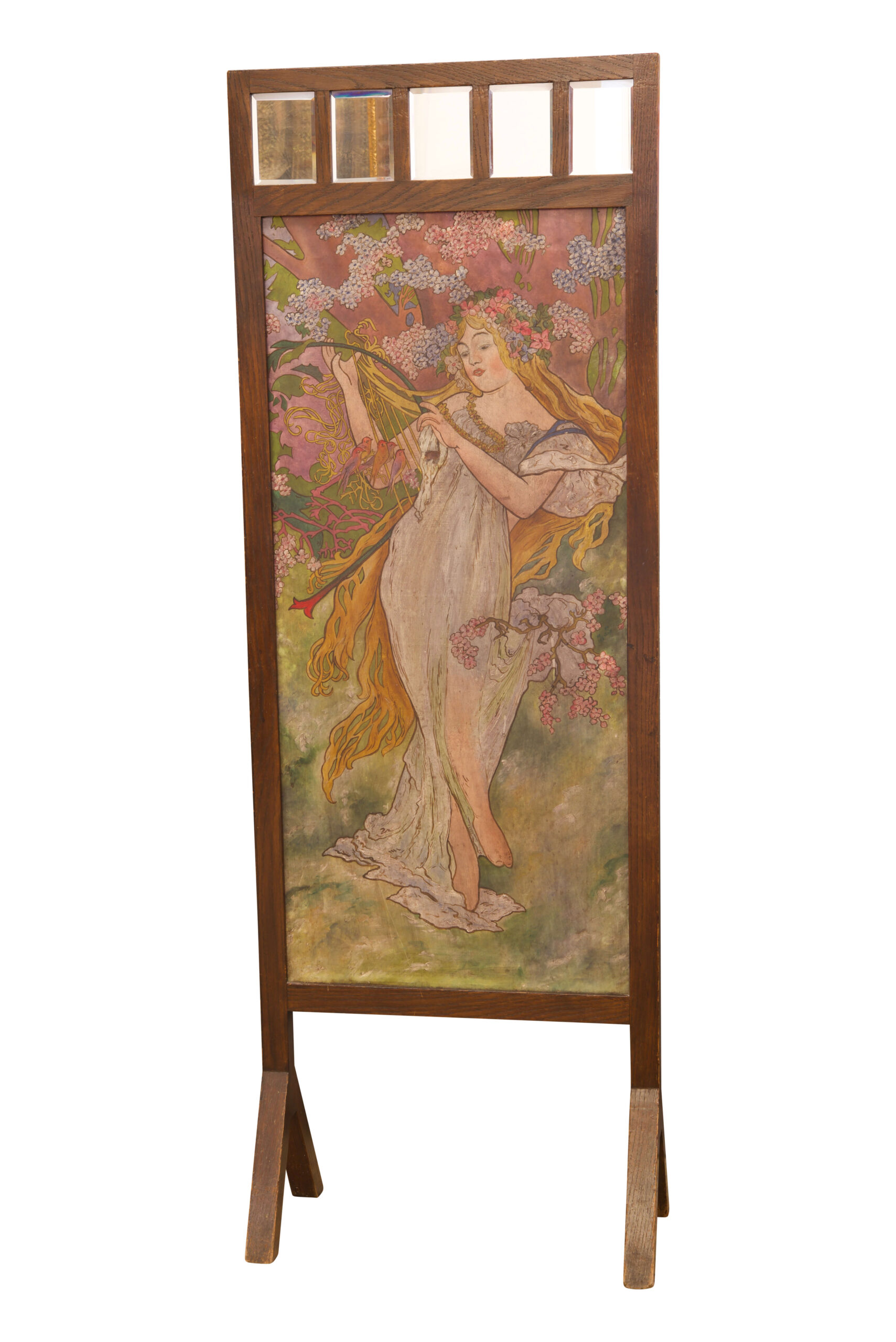 Paravent mit Motiven nach dem Vorbild von Alphonse Mucha aus dem Jahr 1896 aus den “Jahreszeiten”: Frühling, Maße: 155 cm hoch | Screen With Motifs After Alphonse Mucha From 1896 From “The Seasons”: Spring, dimensions: 155 cm high