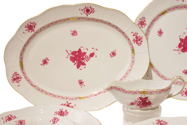 Herender Service Apponyi Purpur, 48-teiliges Set mit elegantem Blumendekor in Lila und Goldakzenten | Herend service Apponyi Purpur, 48-piece set with elegant floral decor in purple and gold accents