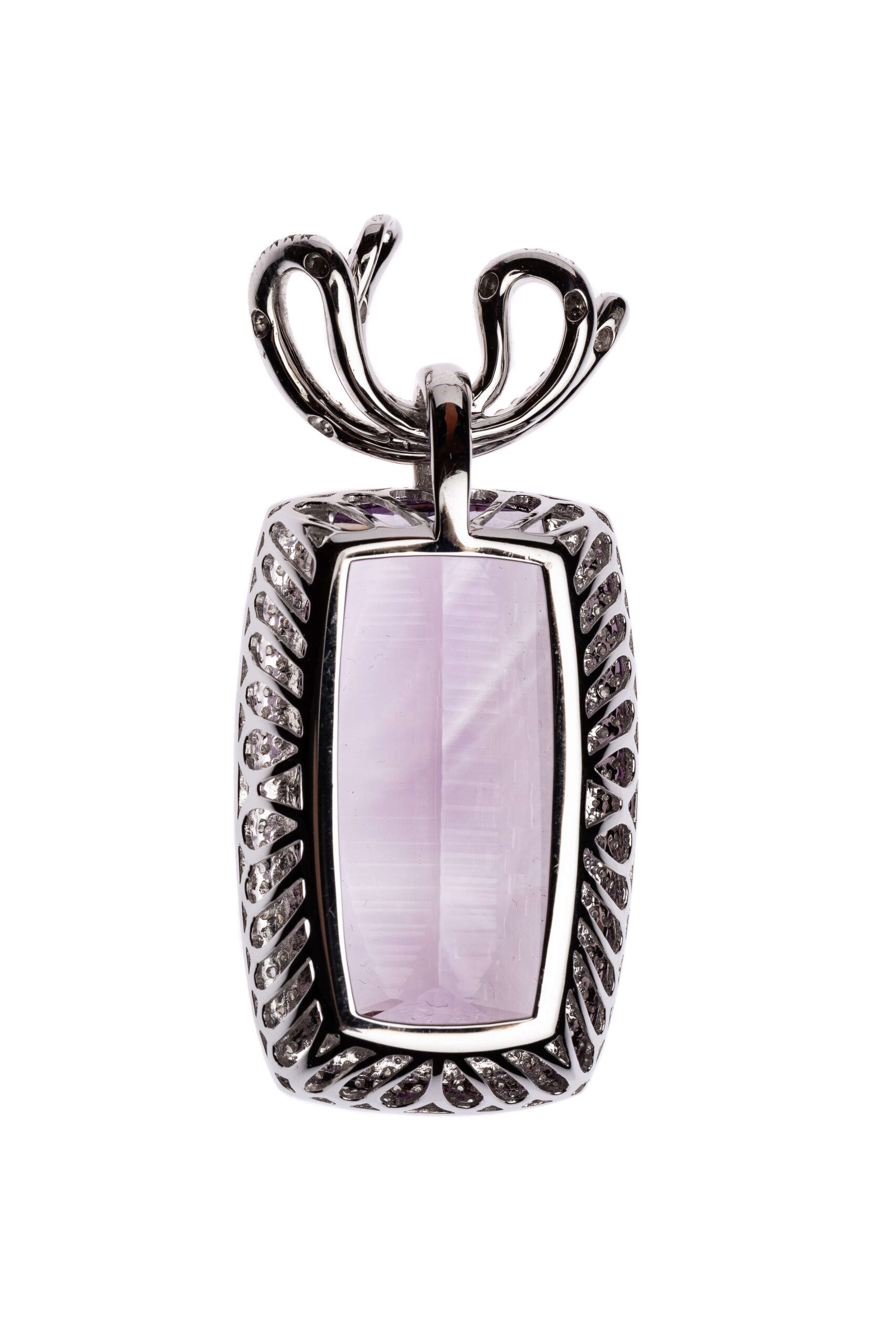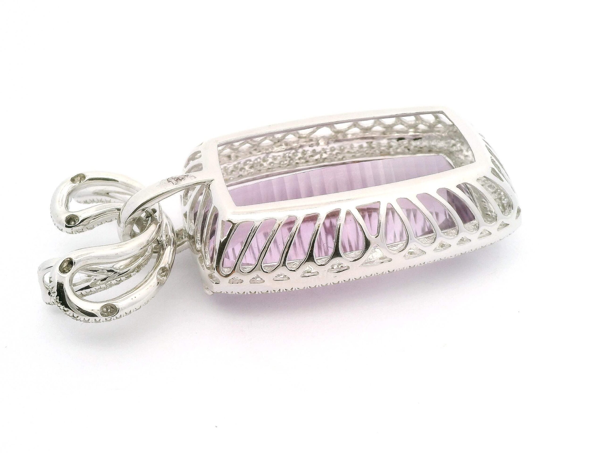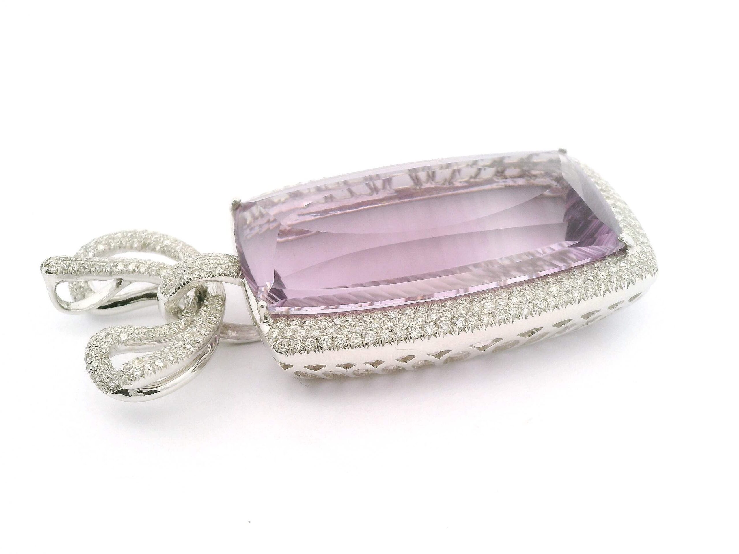 Anhänger aus Weißgold 750/fein mit Brillanten von zusammen circa 2,45 ct und einem Amethyst von circa 64 ct, Gesamtgewicht 17,6 g | Pendant in White Gold 750/Fine with Brilliant-Cut Diamonds Totaling Approx. 2.45 ct and One Amethyst Approx. 64 ct, Gross Weight 17.6 g
