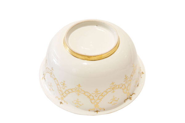Die Böttger Schale ist aus Meissener Porzellan und wurde um 1720 hergestellt. Sie ist verziert mit einem eleganten Golddekor. Maße: Höhe 8 cm, Durchmesser ca. 17 cm | The Böttger bowl is made of Meissen porcelain and dates from around 1720. It is decorated with elegant gold ornamentation. Dimensions: Height 8 cm, diameter approx. 17 cm