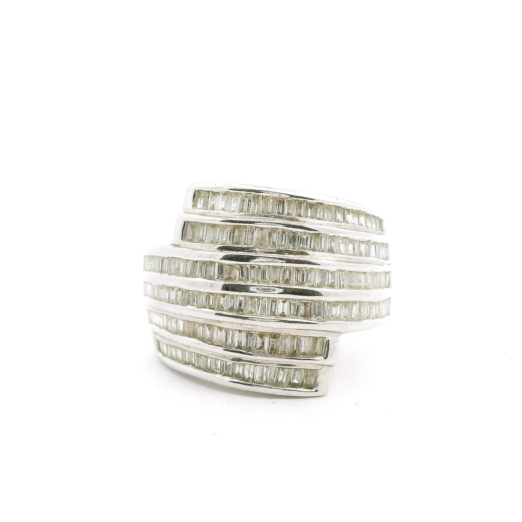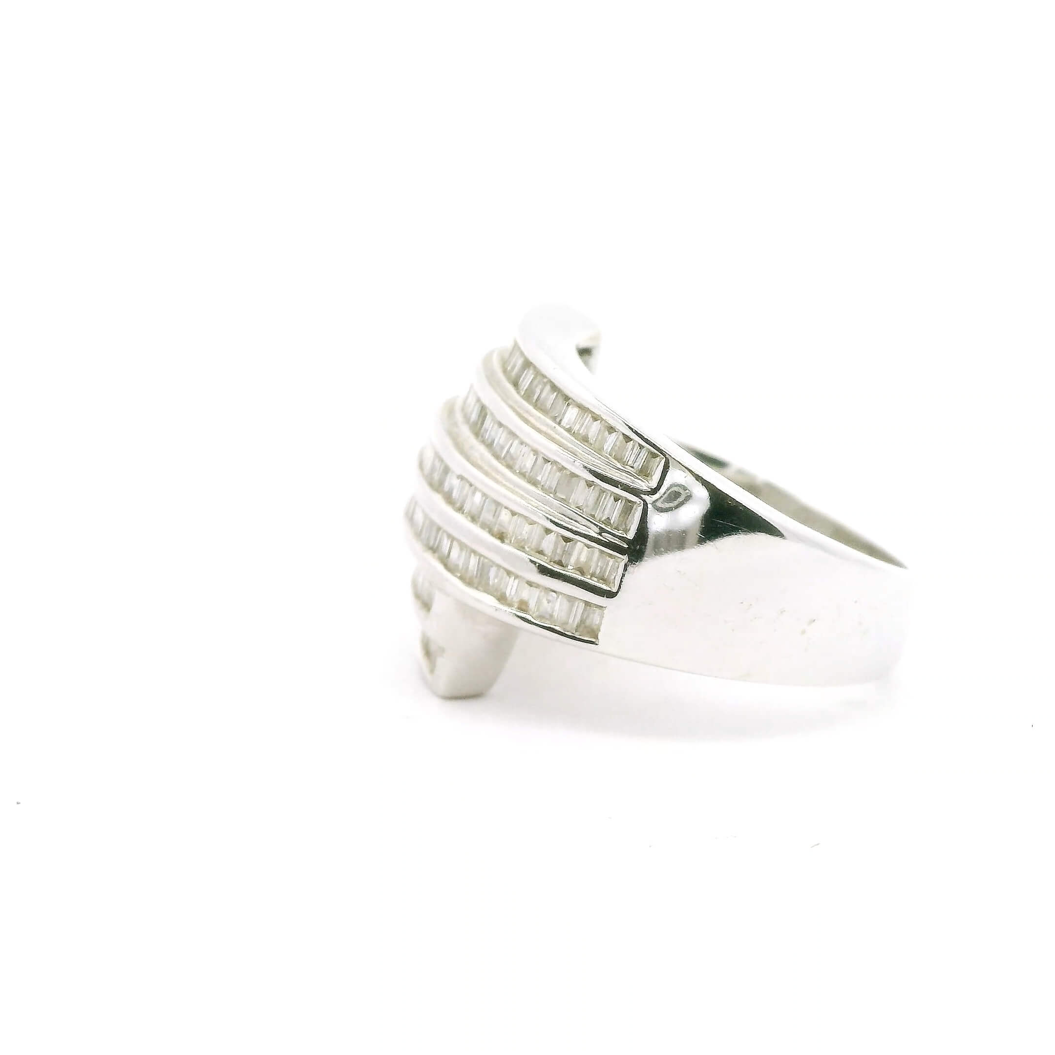 Ring aus Weißgold 750/fein mit Diamanten im Baguetteschliff von zusammen circa 1,4 ct, Gesamtgewicht 16 g, Ringweite 55 | Ring in 18K White Gold set with baguette-cut Diamonds totaling approximately 1.4 ct, total weight 16 g, ring size 55