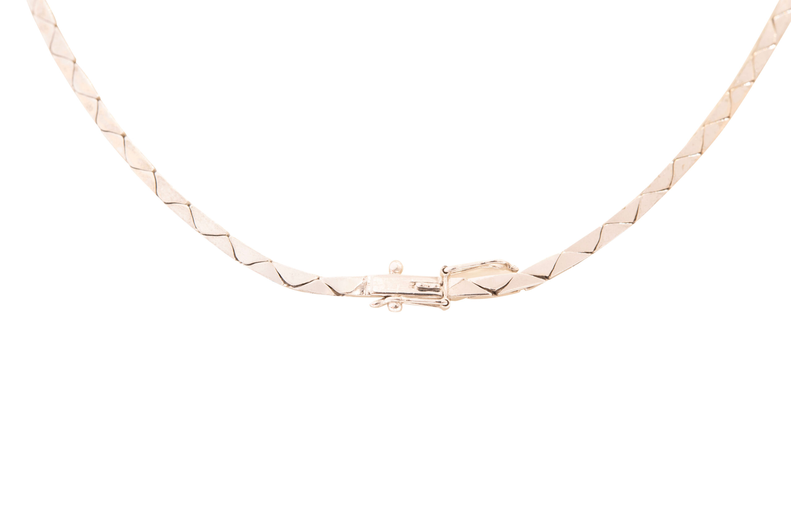 Collier Weißgold 585/fein mit Brillanten, zusammen ca. 0,66 ct, und Smaragden, zusammen ca. 0,59 ct, Gesamtgewicht 19,1 g, Länge 41,5 cm | Necklace white gold 585/fine with diamonds, together approx. 0.66 ct, and emeralds, together approx. 0.59 ct, total weight 19.1 g, length 41.5 cm