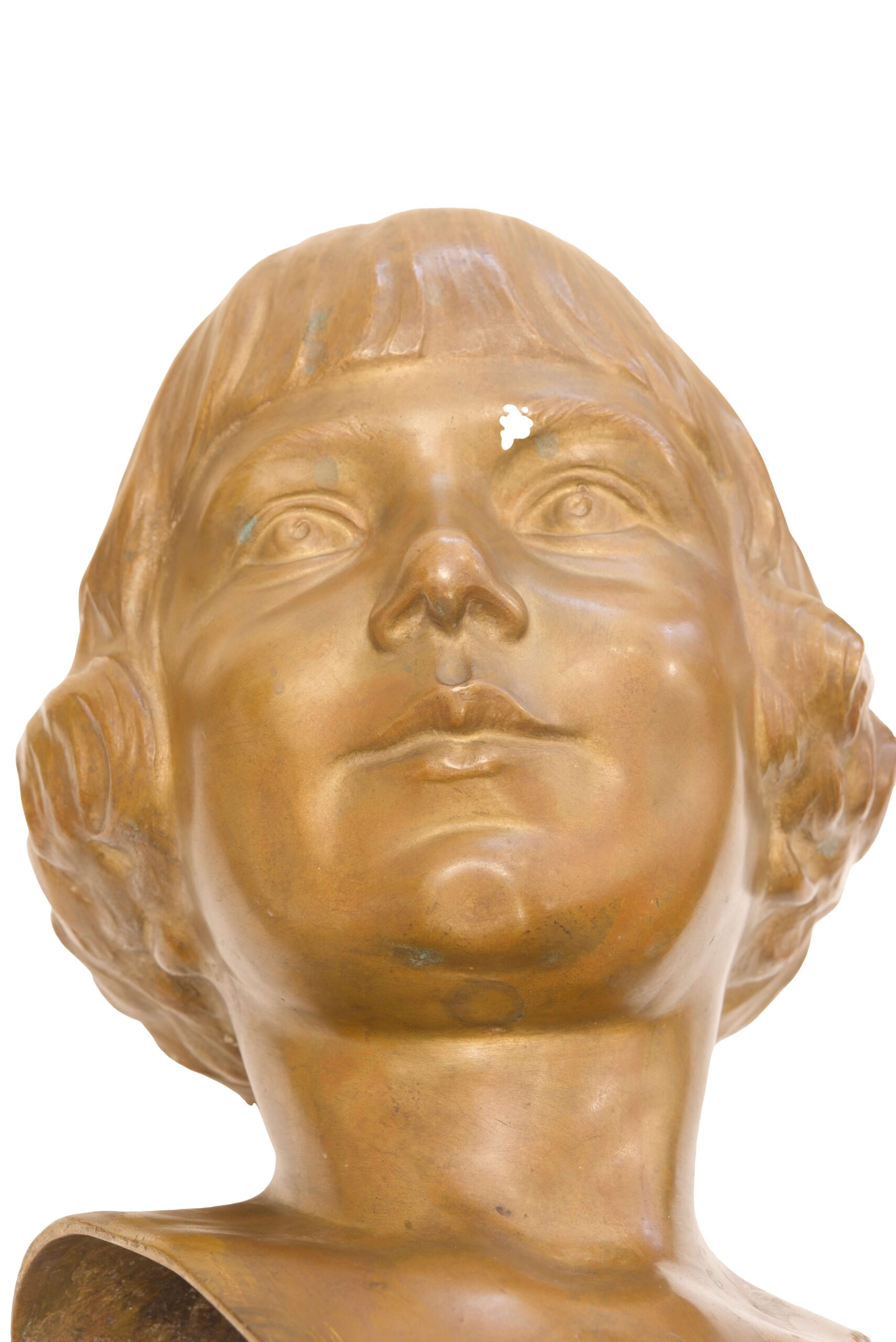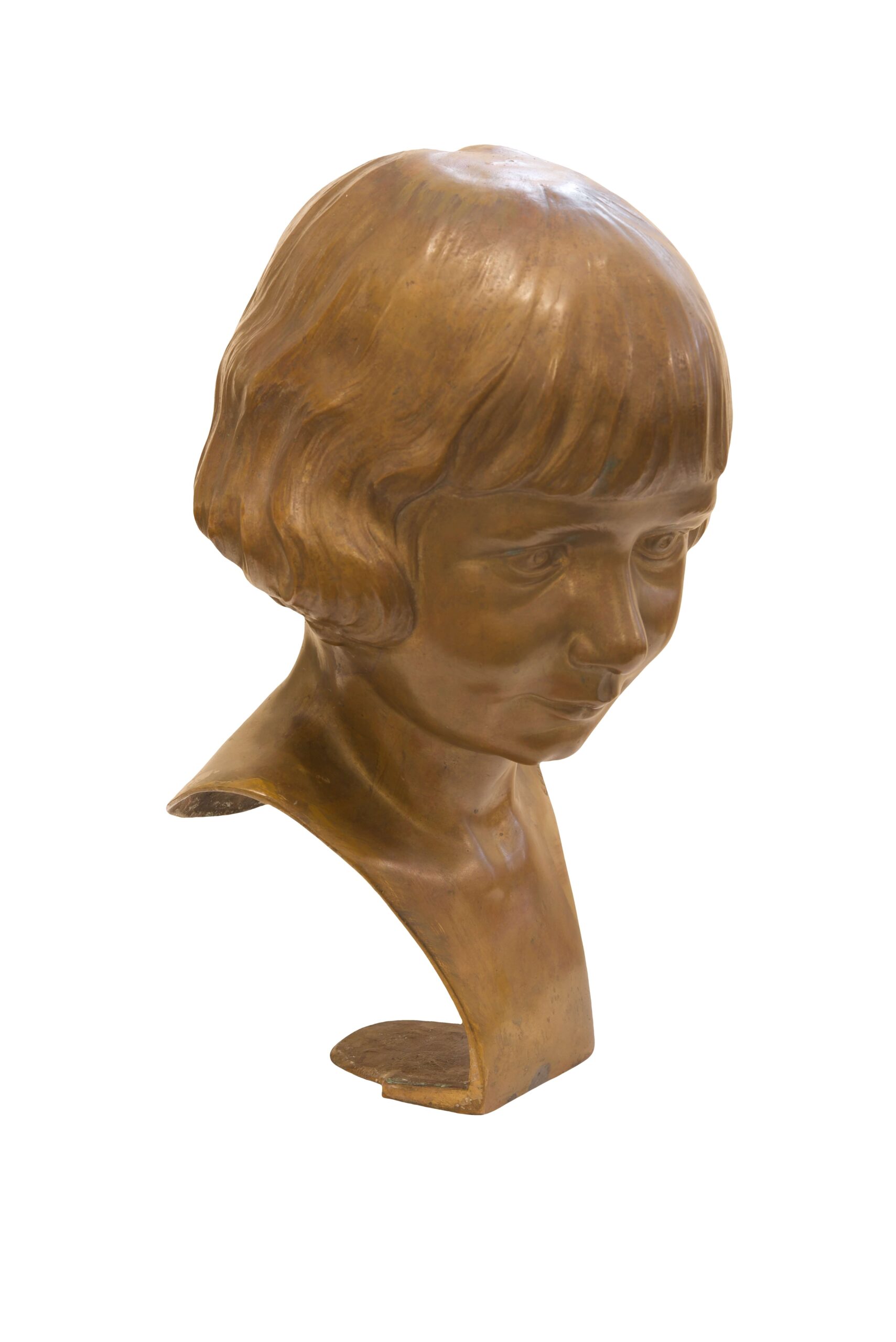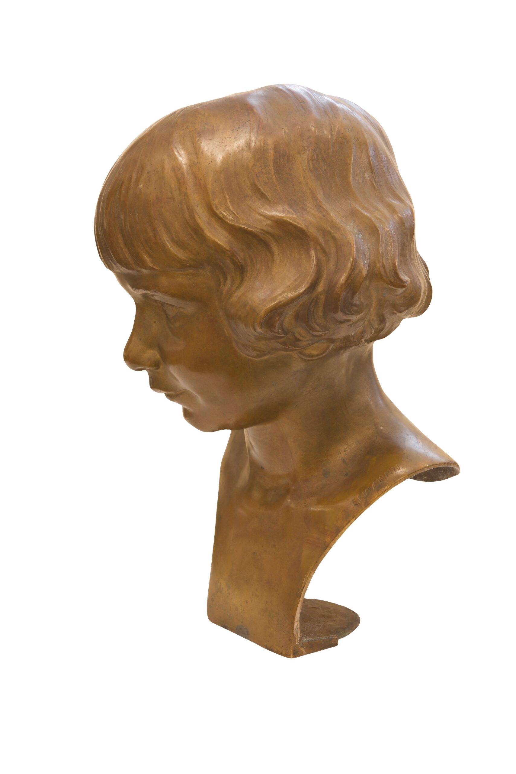 Büste Mädchenkopf mit Kurzhaarschnitt, signiert G.Navmann, Maße: ca. 38 cm hoch | Bust Of A Girl With Short Haircut, signed G. Navmann, height approx. 38 cm