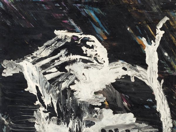 Künstler des 20. Jahrhundert, Abstrakte Komposition, Wohl Frankreich um 1950, Öl auf Hartfaserplatte, unten links mit Signatur (nicht identifiziert), Maße 50 x 59,7 cm | Artist of the 20th century, Abstract composition, Probably France circa 1950, Oil on hardboard, bottom left with signature (not identified), dimensions 50 x 59.7 cm