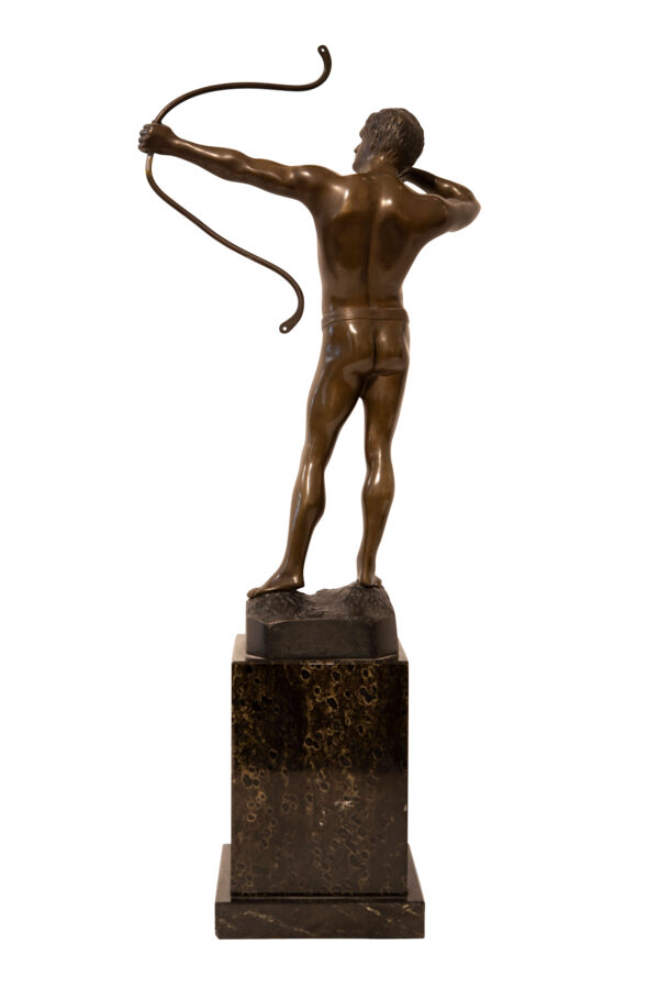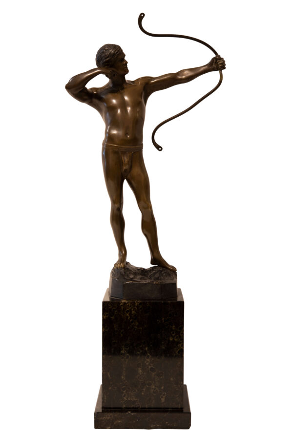 Bronze, brown patinated, standing on uneven plinth, mounted on marble base, height of frame 51 cm, base 16 cm, figure 35.5 cm | Bronze, braun patiniert, auf unebener Plinthe stehend, montiert auf Marmorsockel, Gesanthöhe 51 cm, Sockel 16 cm, Figur 35,5 cm
