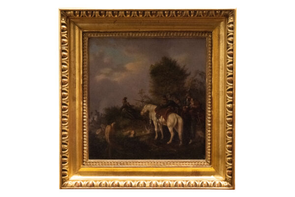 Artist of the 19th century war scene with soldiers, oil on canvas, not signed, framed. Height 34 cm, width 33 cm.