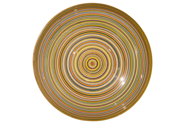 Glass bowl painted with colorful circles, diameter 26 cm, height 5 cm | Glas Schale mit bunten Kreisen, Durchmesser 26 cm, Höhe 5 cm