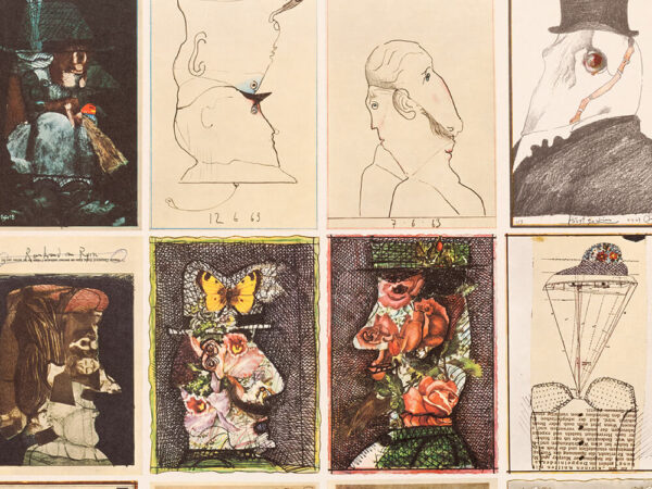 Offset print in colors on cardboard, Germany, 1972, Lower right signed in pencil ‘Janssen’, Above titled and dated in the print ‘vier hoch zwei zu sich Karten für solche die an sich auf Karten warten – Janssen 21.1.2 + 70’, Sheet size: 63.8 x 46 cm