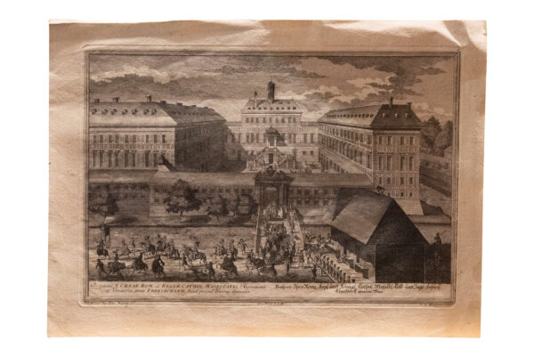 Jagdschloss Kaiserebersdorf, Kupferstich G.D.Heumann nach Salomon Kleiner um 1750, 28 x 38,5 cm.