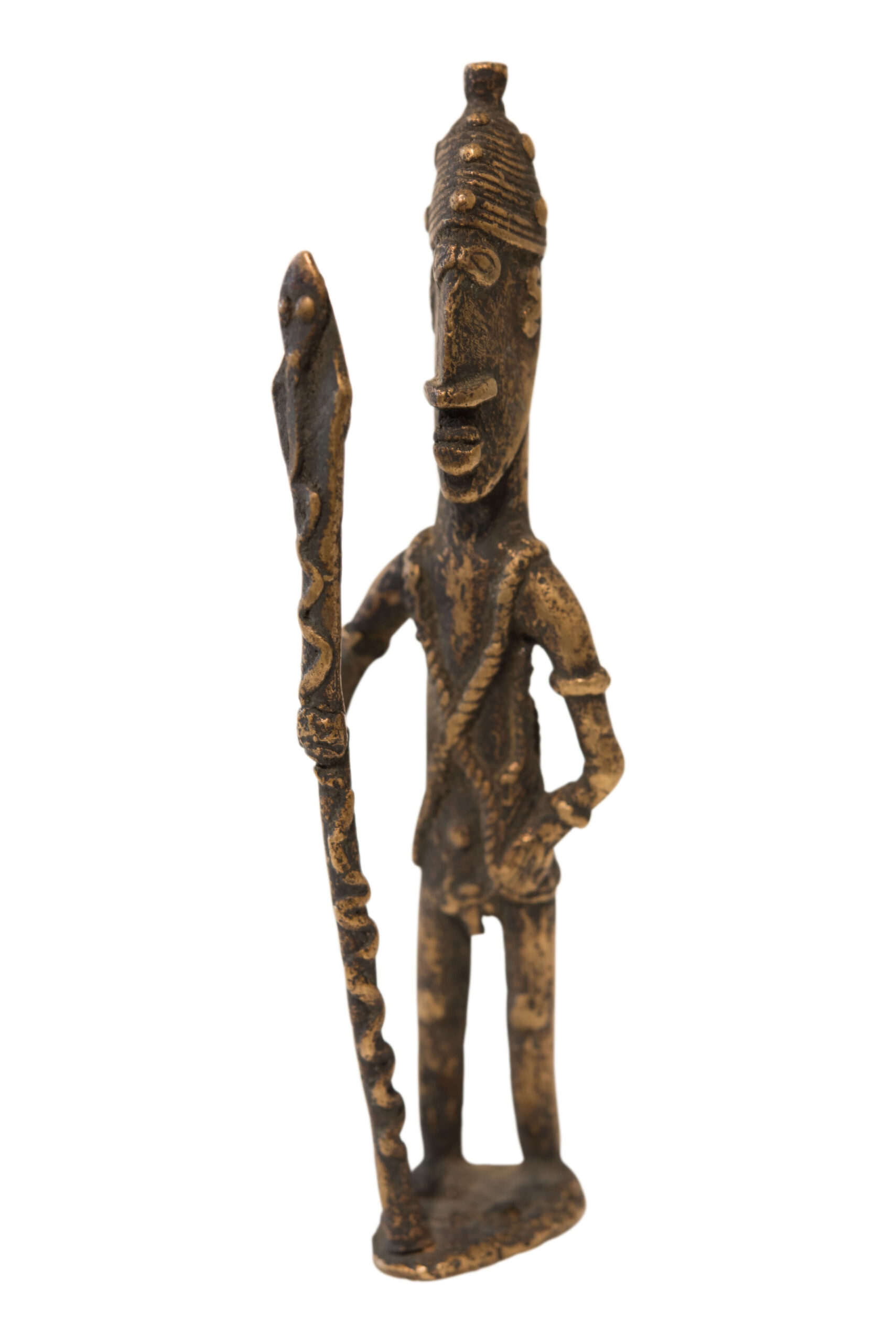 Figur eines Kriegers mit Speer aus Messing, circa 18 cm hoch | Figure of a warrior with spear made of brass, about 18 cm high