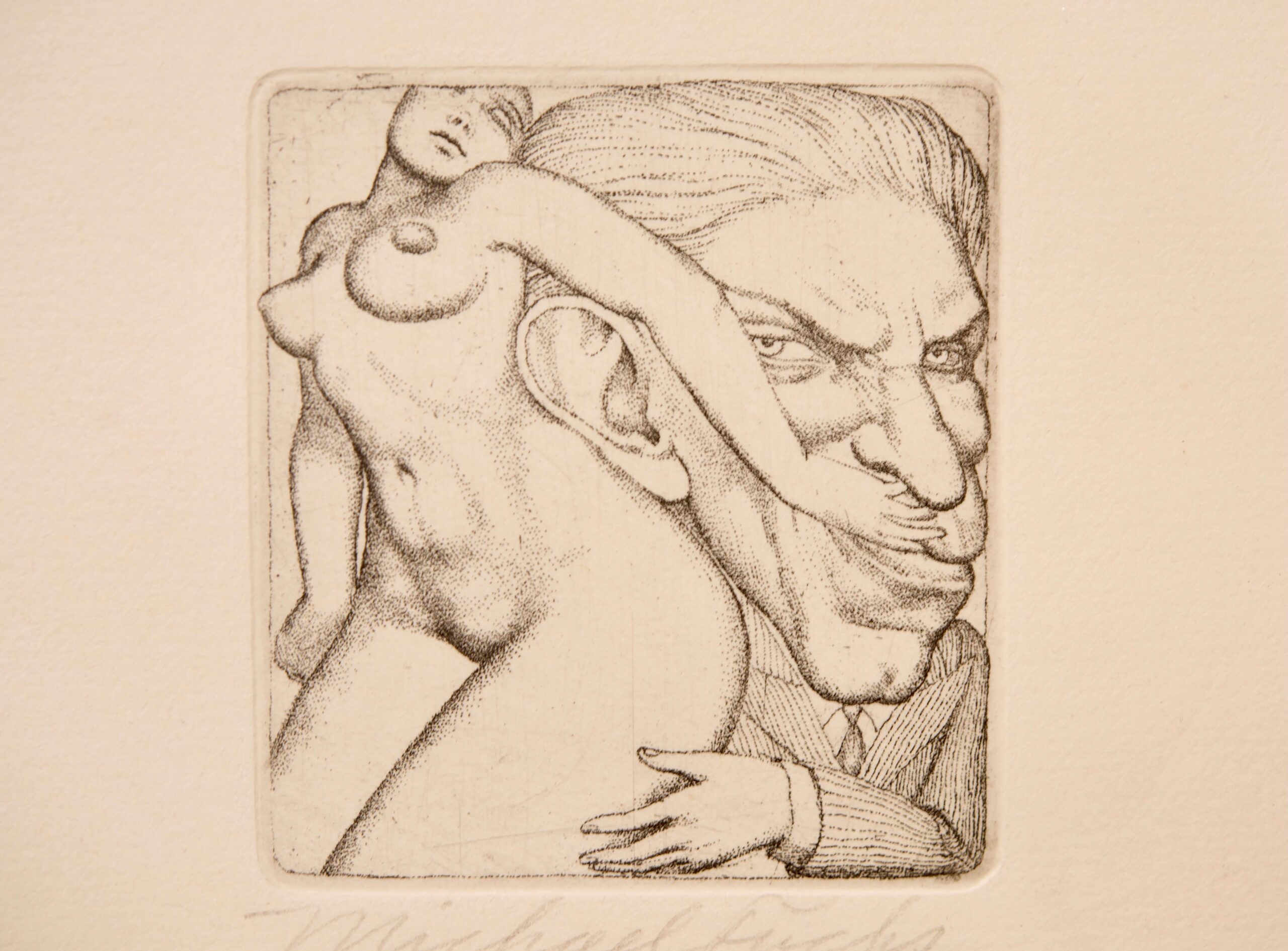 Etching, signed Michael Fuchs 1989 edition 15/200, very beautiful carved frame, gilded, height 39 cm, width 36.5 cm including frame | Radierung, signiert Michael Fuchs 1989 Auflage 15/200, sehr schöne geschnitzte Rahmen, vergoldet, inklusive Rahmen Höhe 39 cm, Breite 36,5 cm