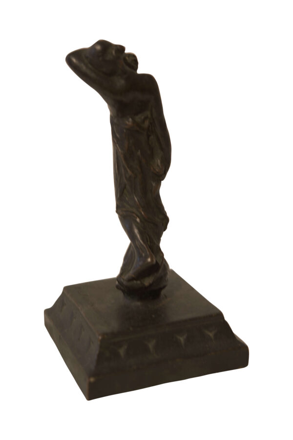 Bronze, a nude woman hiding her face in her arm, standing on a square bronze base, height 16,5 cm | Bronze, eine nackte Frau, ihr Gesicht im Arm verbergend, stehend auf einem viereckigen Bronze Sockel, Höhe 16,5 cm