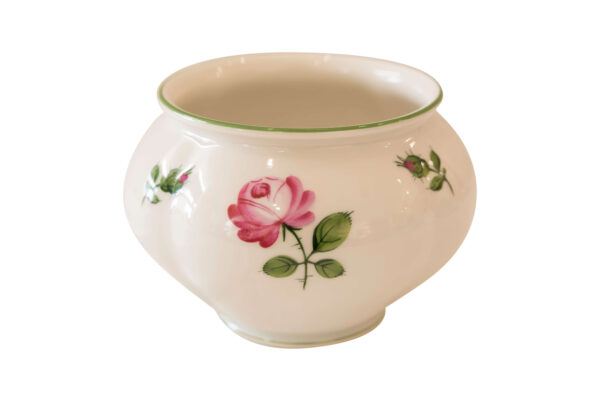 Wien Augarten Porzellan Vase Übertopf Wiener Rose 5089, Maße: circa 9,5 cm hoch | Vienna Augarten porcelain vase cachepot Viennese Rose 5089, dimensions: approximately 9.5 cm high