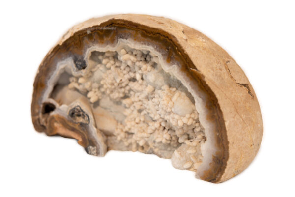Quarz-Druse mit Chalcedon in natürlicher Form, Maße: 22 cm lang, 13 cm hoch, ca. 7 cm breit | Quartz druse with chalcedony in natural shape, dimensions: 22 cm long, 13 cm high, approx. 7 cm wide