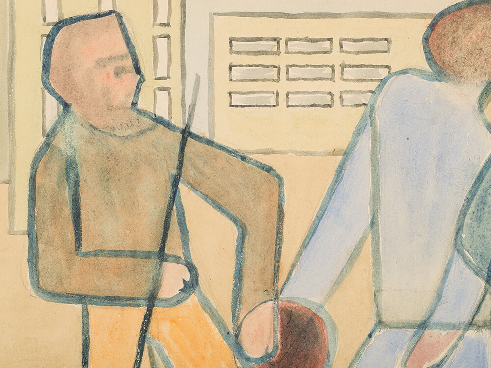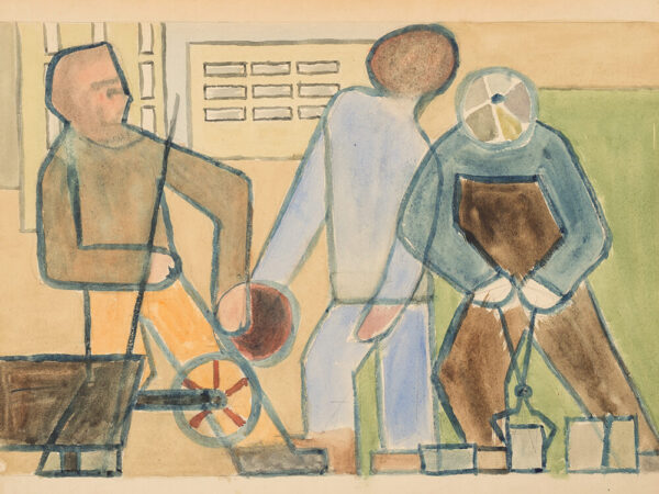 Rudolf Petrik, Bauarbeiter, Watercolor, Austria, c. 1950