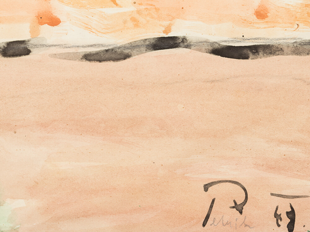 Watercolor on paper, signed and dated “Petrik. 48.” as well as inscribed on the mount by the artist “Brigittakirche”, on the verso with the artist’s estate stamp, overall dimensions: 48,3 x 67 cm
