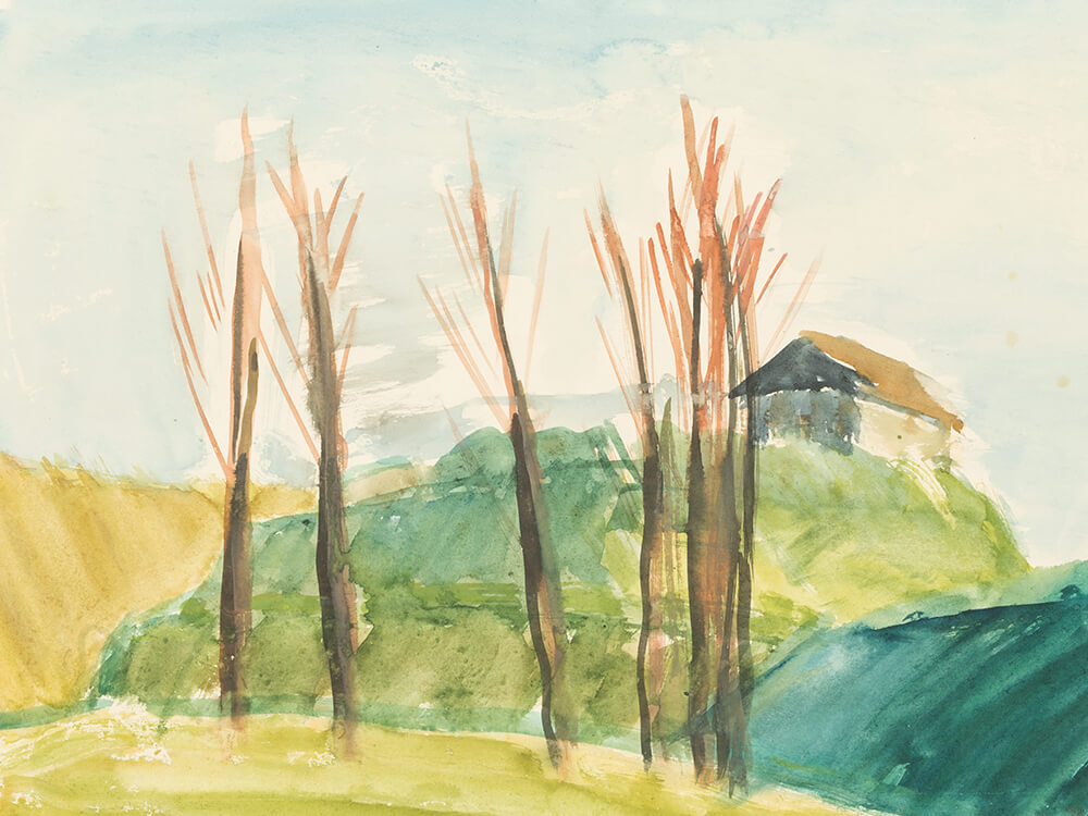Rudolf Petrik, House on the Hill, Watercolor, Austria, c. 1950