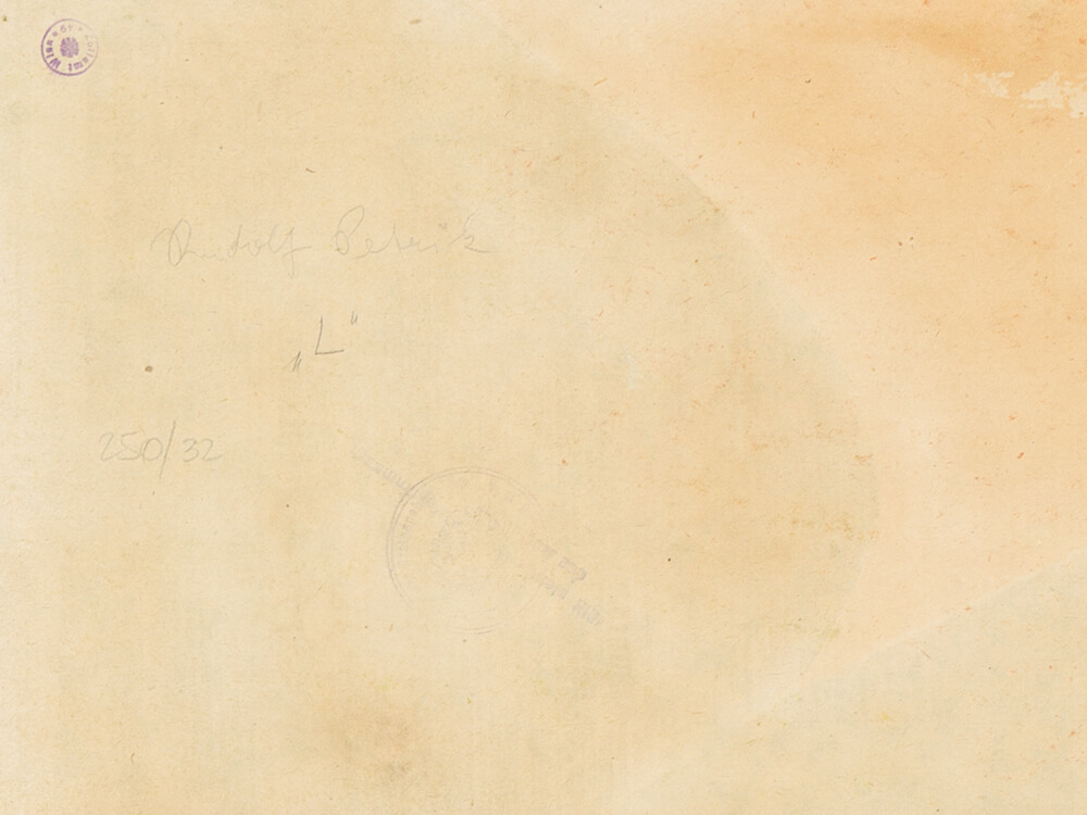 Print on paper, signed P” lower right, in pencil, signed and titled “Rudolf Petrik ‘L'” on the reverse, in pencil, and with estate stamp, sheet dimensions: 60 x 45 cm