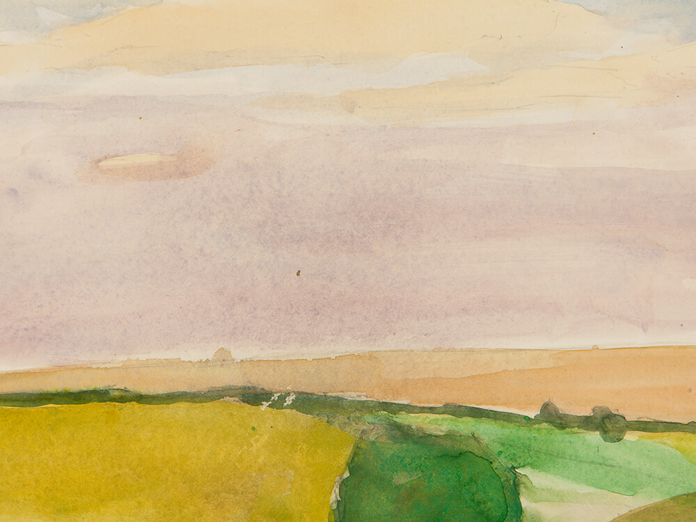 Rudolf Petrik, Wide Landscape, Watercolor, Austria, c. 1950