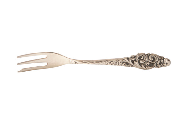 12 kleine Kuchengabeln Silber circa 800/fein mit Box Zinken leicht vergoldet, Maße: Länge 12,2 cm, Gesamtgewicht ohne Box circa 71g | 12 small cake forks silver 800/fine with box tines lightly gilded, dimensions: length 12,2 cm, total weight without box 71g