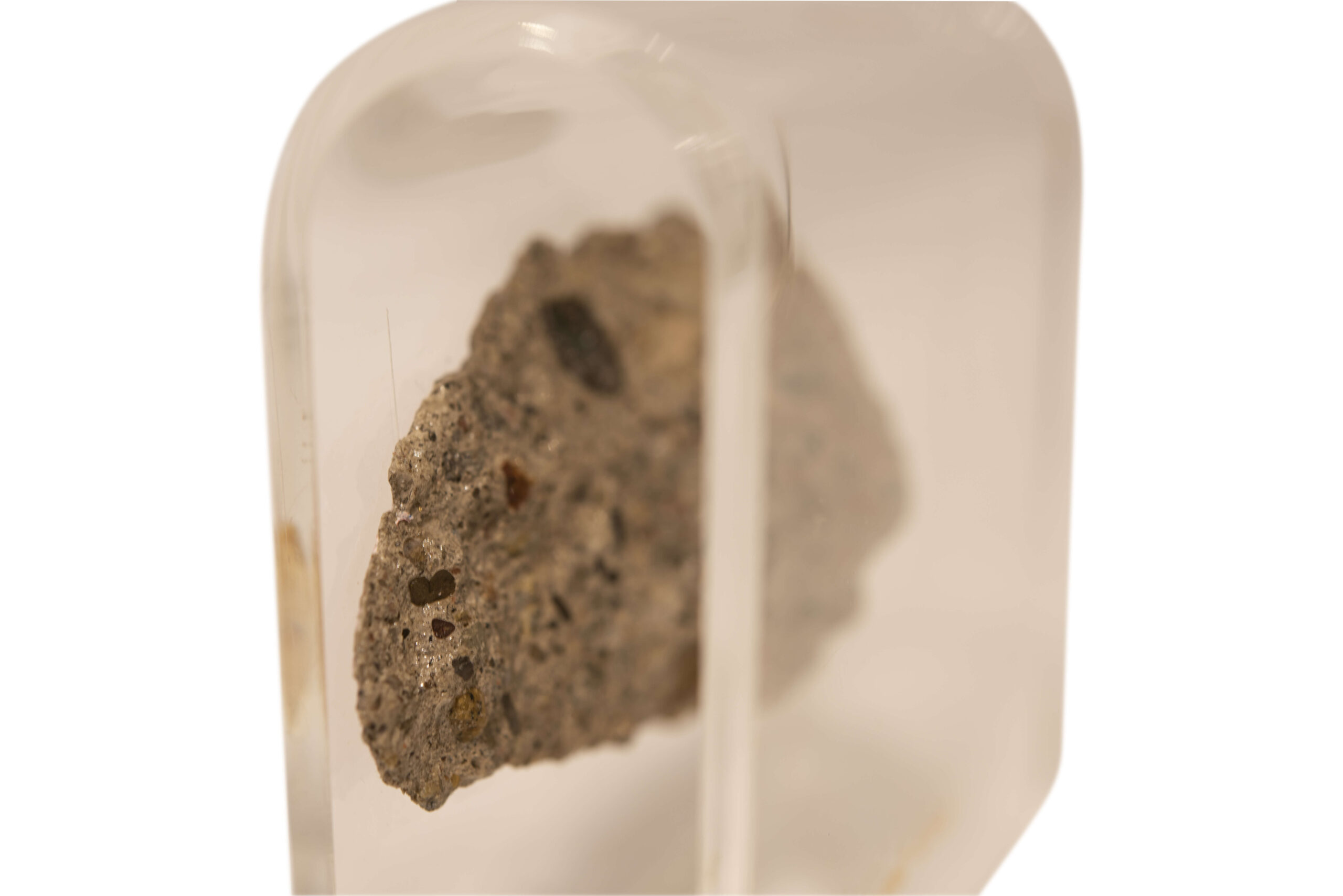 Ein Stück Mauerstein von der Berliner Mauer in Acrylständer, die Berliner Mauer war während der Teilung Deutschlands ein Grenzbefestigungssystem der Deutschen Demokratischen Republik, die vom 13. August 1961 bis zum 9. November 1989 bestand, um West-Berlin vom Gebiet der DDR hermetisch abzuriegeln, Breite 7,5 cm, Höhe circa 5,5 cm, Ständer Höhe 9,5 cm, Breit 10 cm | A piece of wall stone from the Berlin Wall in acrylic stand, the Berlin Wall was a border fortification system of the German Democratic Republic during the division of Germany, which existed from August 13, 1961 to November 9, 1989 to hermetically seal off West Berlin from the territory of the GDR, width 7.5 cm, height about 5.5 cm, stand height 9.5 cm, width 10 cm