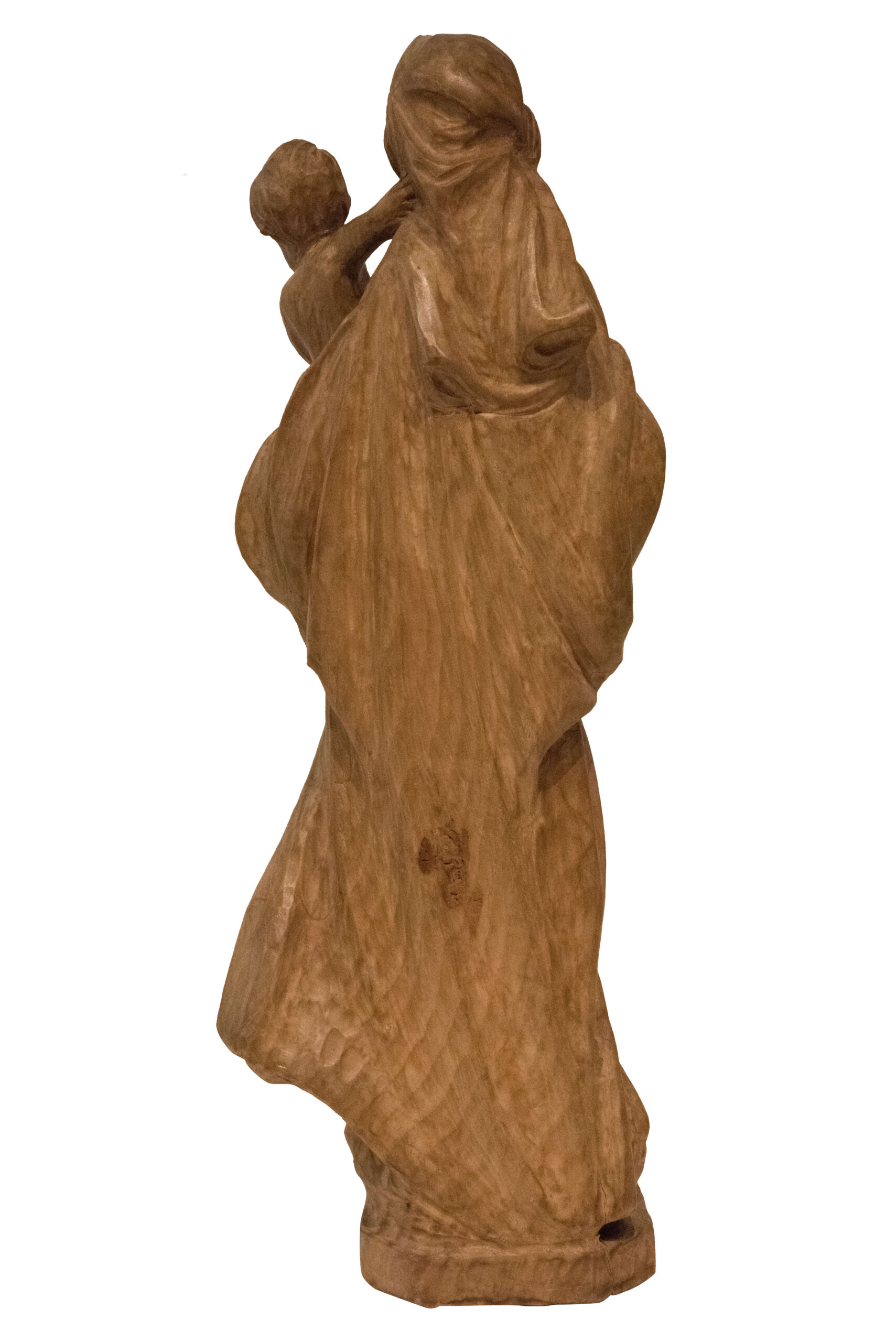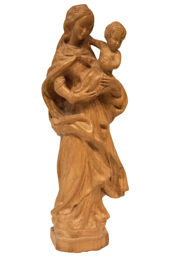 Virgin Mary with baby Jesus, beautiful carving of natural wood, Mary holding the child in her arms, monogrammiert J.K., 53 cm.